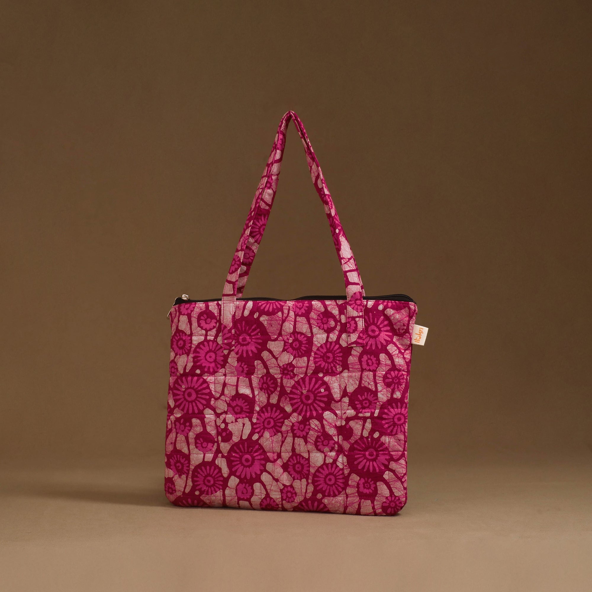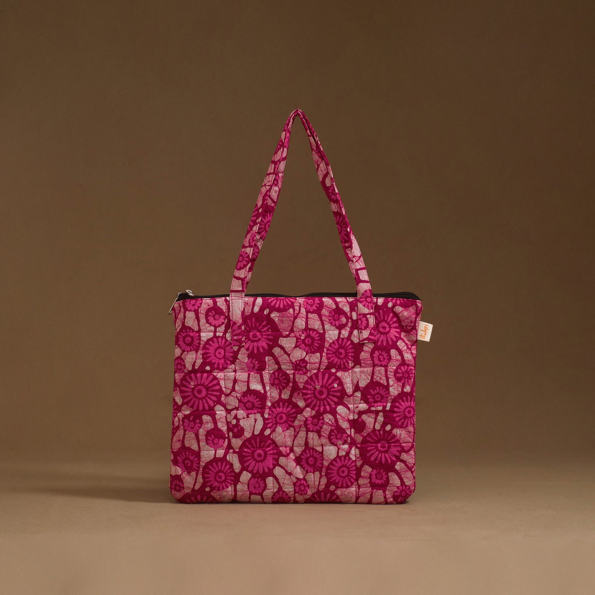 Handcrafted pink quilted handbag in cotton featuring a secure zippered closure and a spacious interior for your everyday essentials. The soft foam lining enhances durability and protection, making it perfect for daily use or travel.