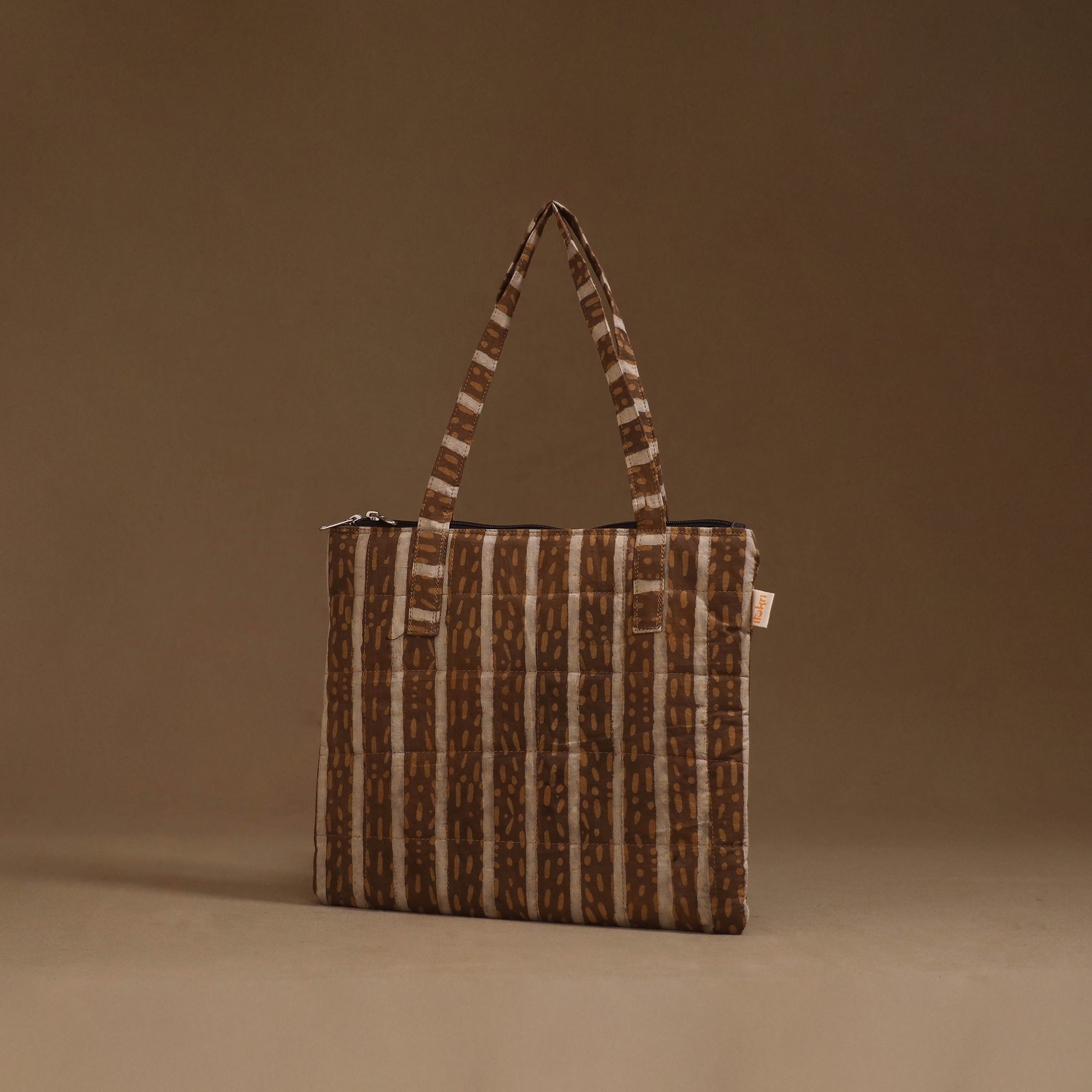 Handcrafted quilted handbag in cotton featuring a secure zippered closure and a spacious interior for your everyday essentials. The soft foam lining enhances durability and protection, making it perfect for daily use or travel.