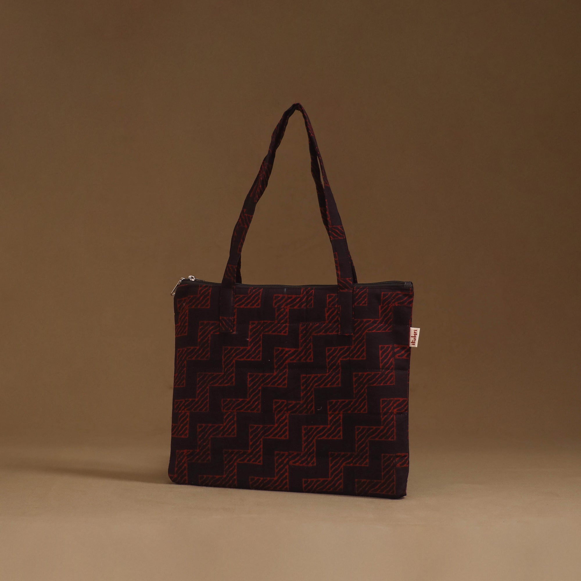 Handcrafted quilted handbag in cotton featuring a secure zippered closure and a spacious interior for your everyday essentials. The soft foam lining enhances durability and protection, making it perfect for daily use or travel.