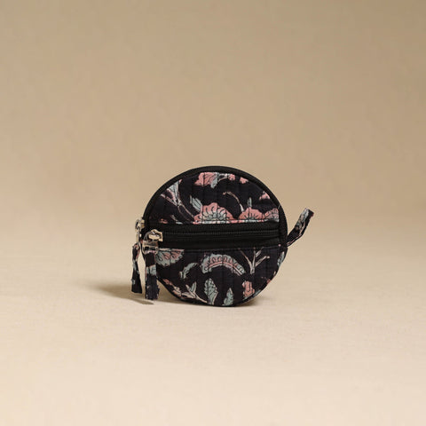 | Material | Handcrafted quilted black sanganeri block printed fabric suneeta coin pouch is developed by iTokri in collaboration with Chhoti Si Asha. Compact and round in shape, it is designed to store coins, earbuds, folded notes, and small jewellery. The quilted structure helps maintain shape while protecting contents. It features a smooth zip closure for secure storage. Soft and easy to carry, it fits neatly into bags or pockets, while the side loop allows quick handling or easy attachment. |