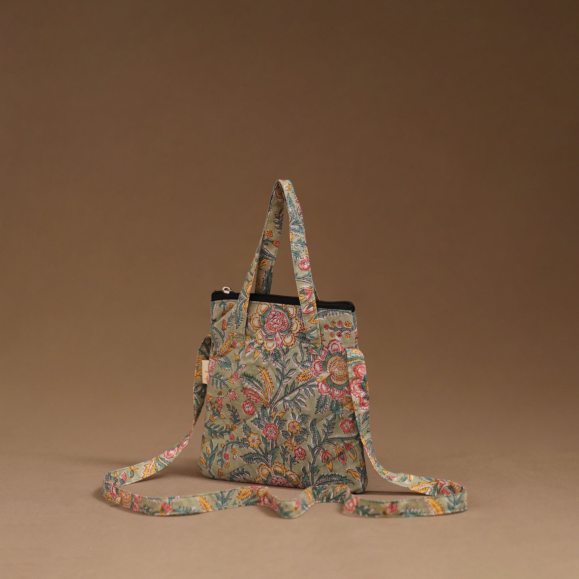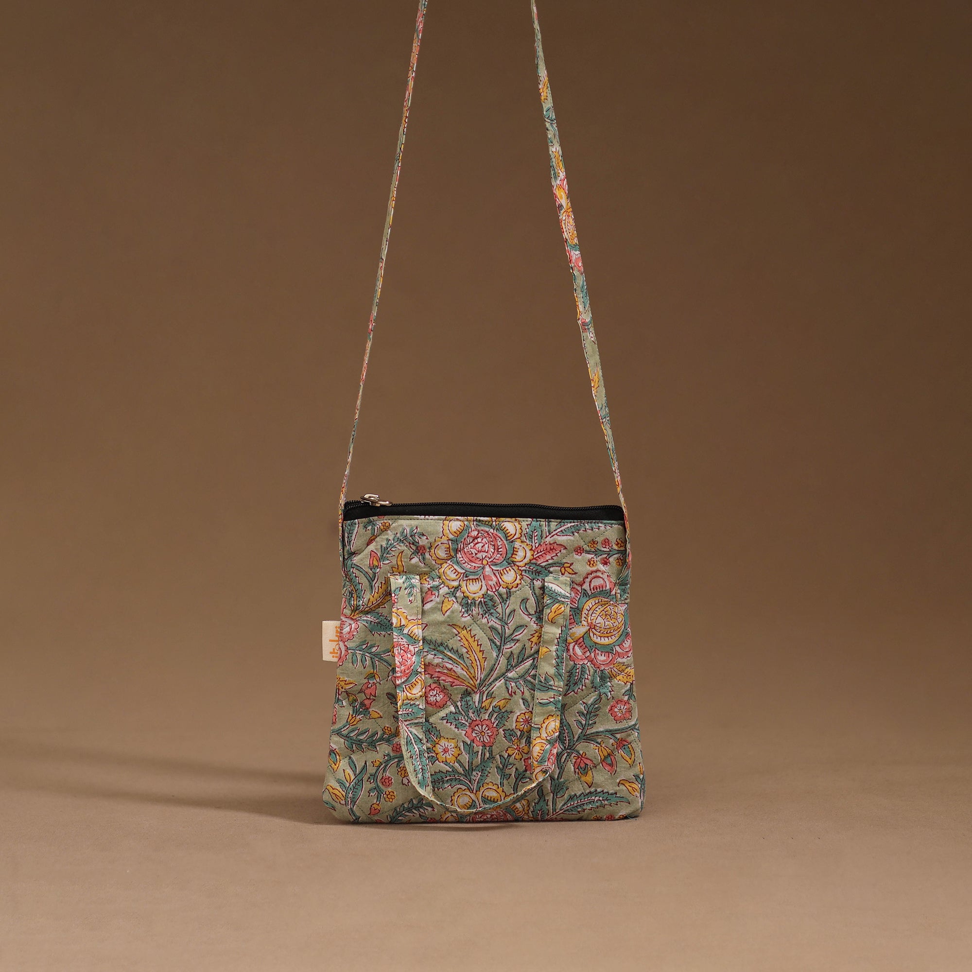 Make every outing stylish with this handmade sling bag in cotton. Designed with quilted layers for added safety, it features four pockets to carry your everyday essentials. Comfortable to use for daily activities, trips or casual outings.