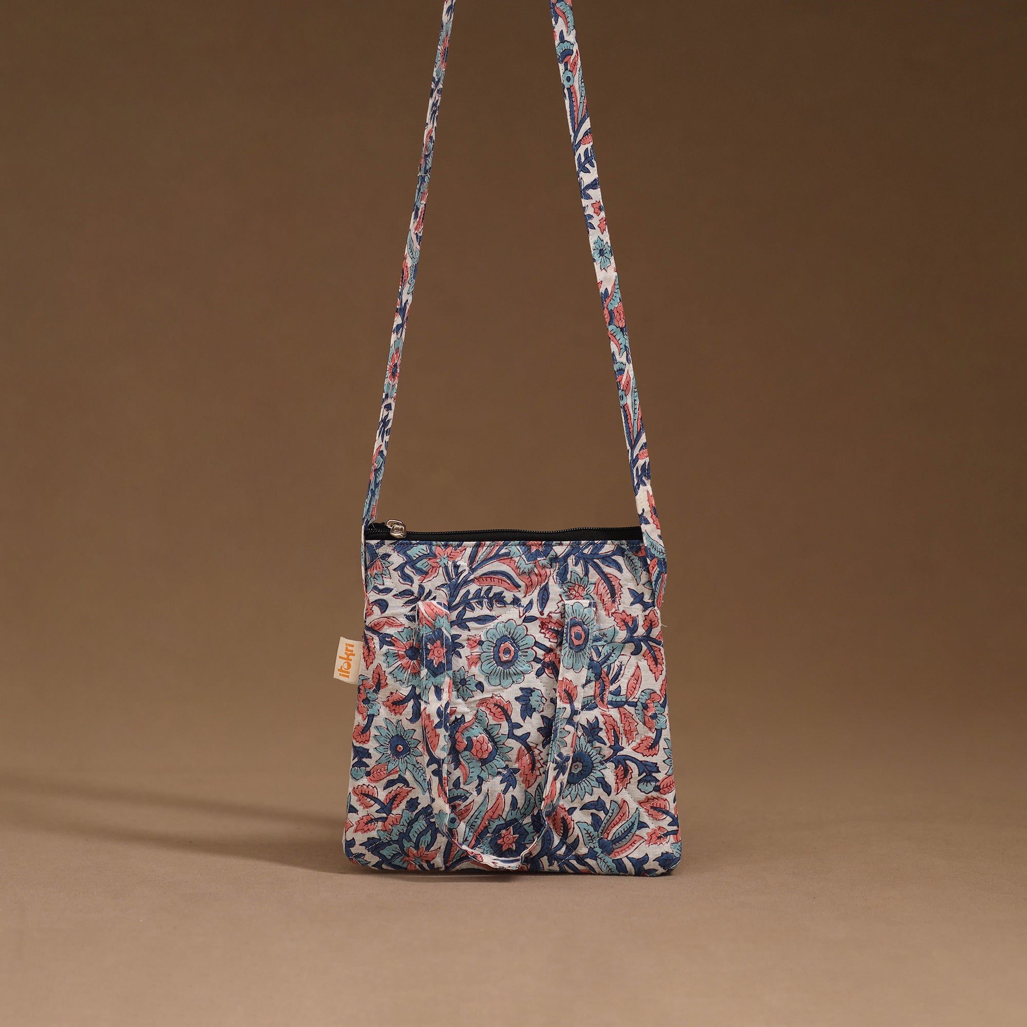 Make every outing stylish with this handmade sling bag in cotton. Designed with quilted layers for added safety, it features four pockets to carry your everyday essentials. Comfortable to use for daily activities, trips or casual outings.