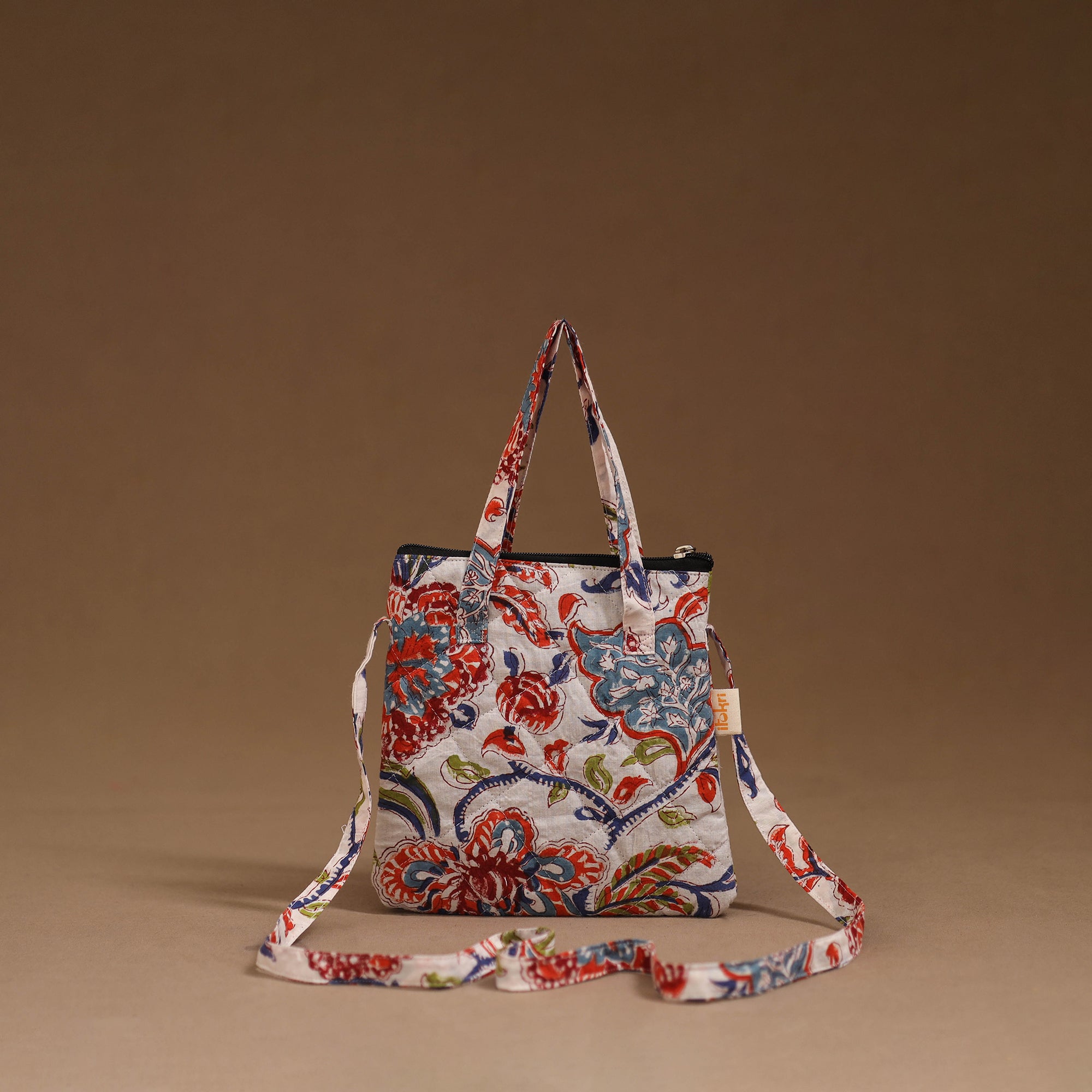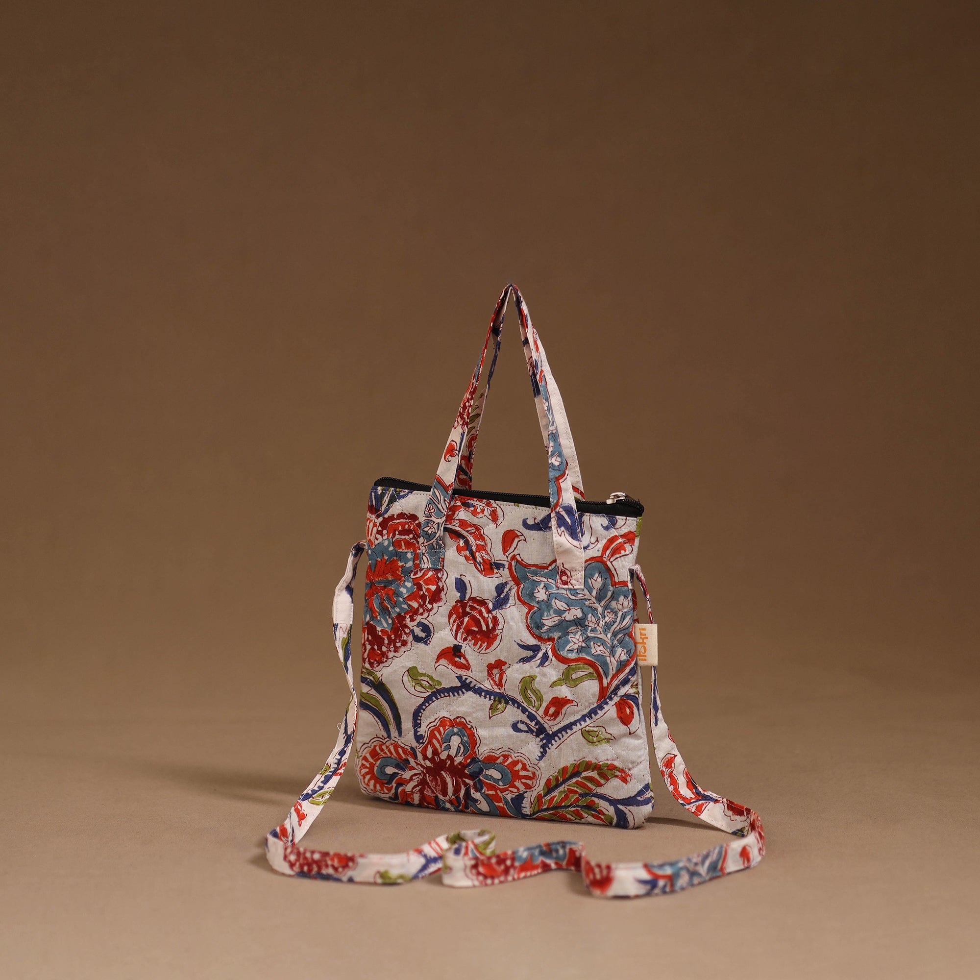 Make every outing stylish with this handmade sling bag in cotton. Designed with quilted layers for added safety, it features four pockets to carry your everyday essentials. Comfortable to use for daily activities, trips or casual outings.