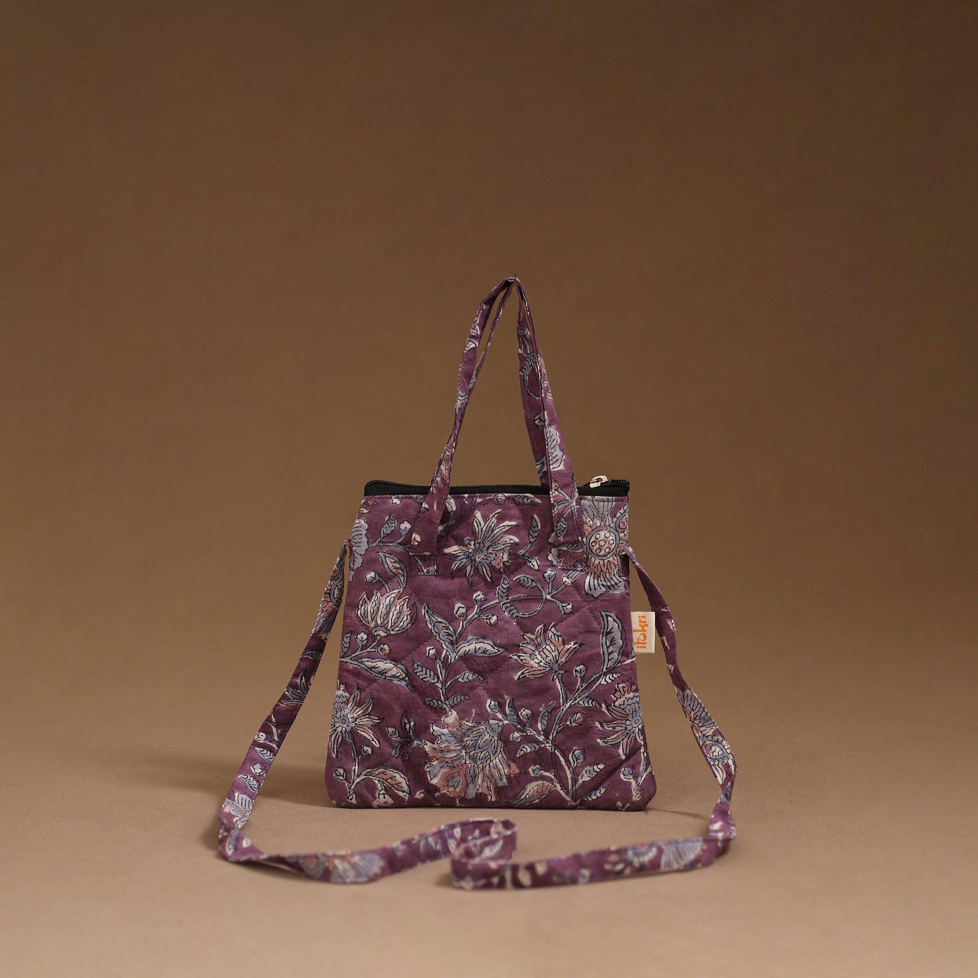 Make every outing stylish with this handmade sling bag in cotton. Designed with quilted layers for added safety, it features four pockets to carry your everyday essentials. Comfortable to use for daily activities, trips or casual outings.