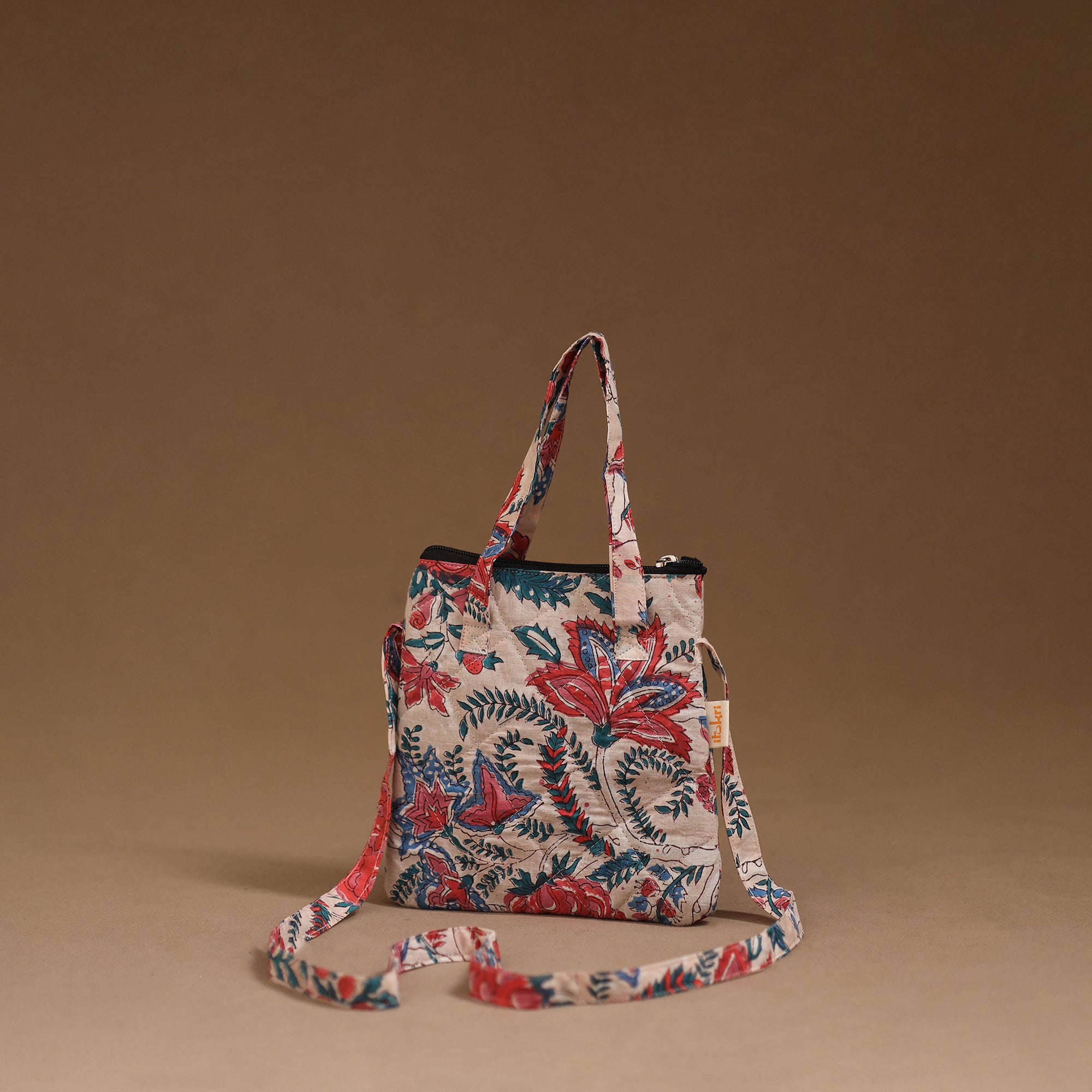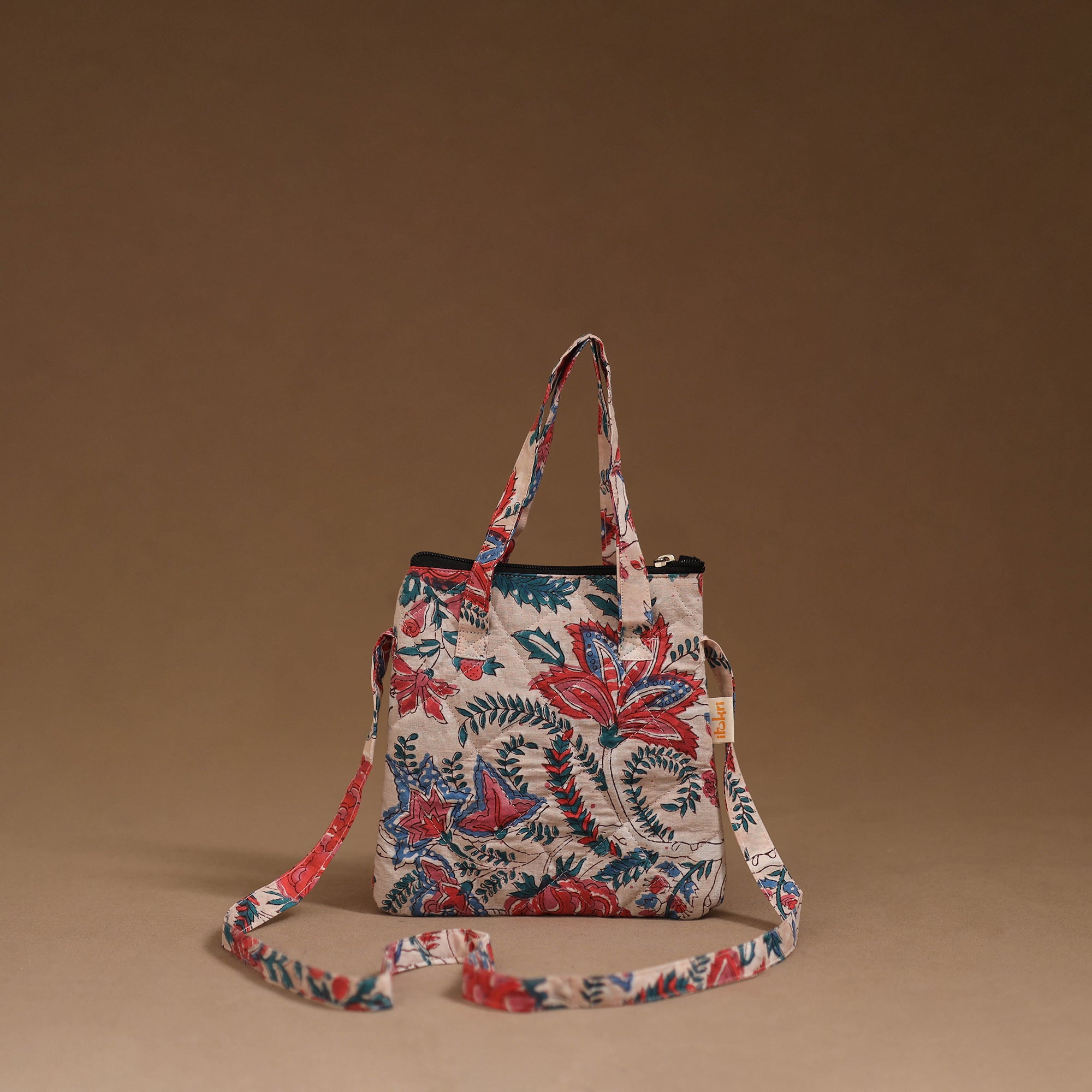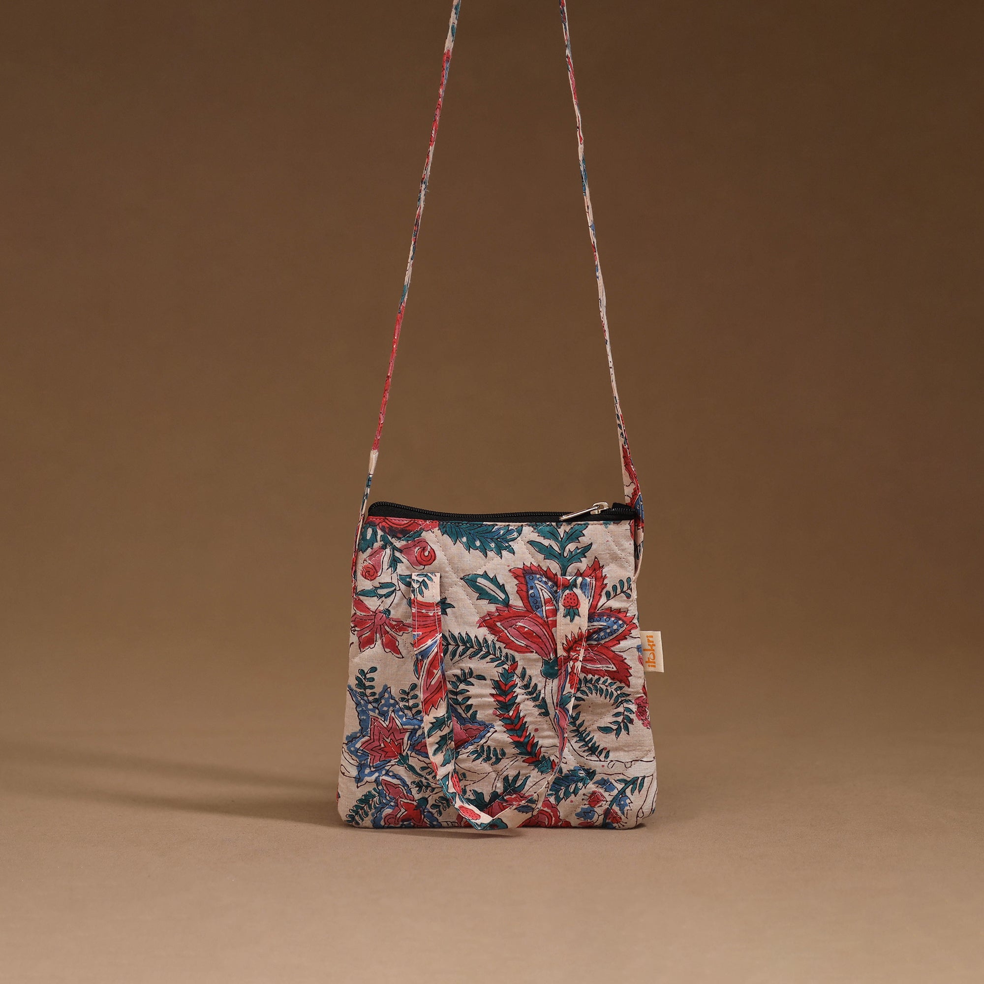 Make every outing stylish with this handmade sling bag in cotton. Designed with quilted layers for added safety, it features four pockets to carry your everyday essentials. Comfortable to use for daily activities, trips or casual outings.