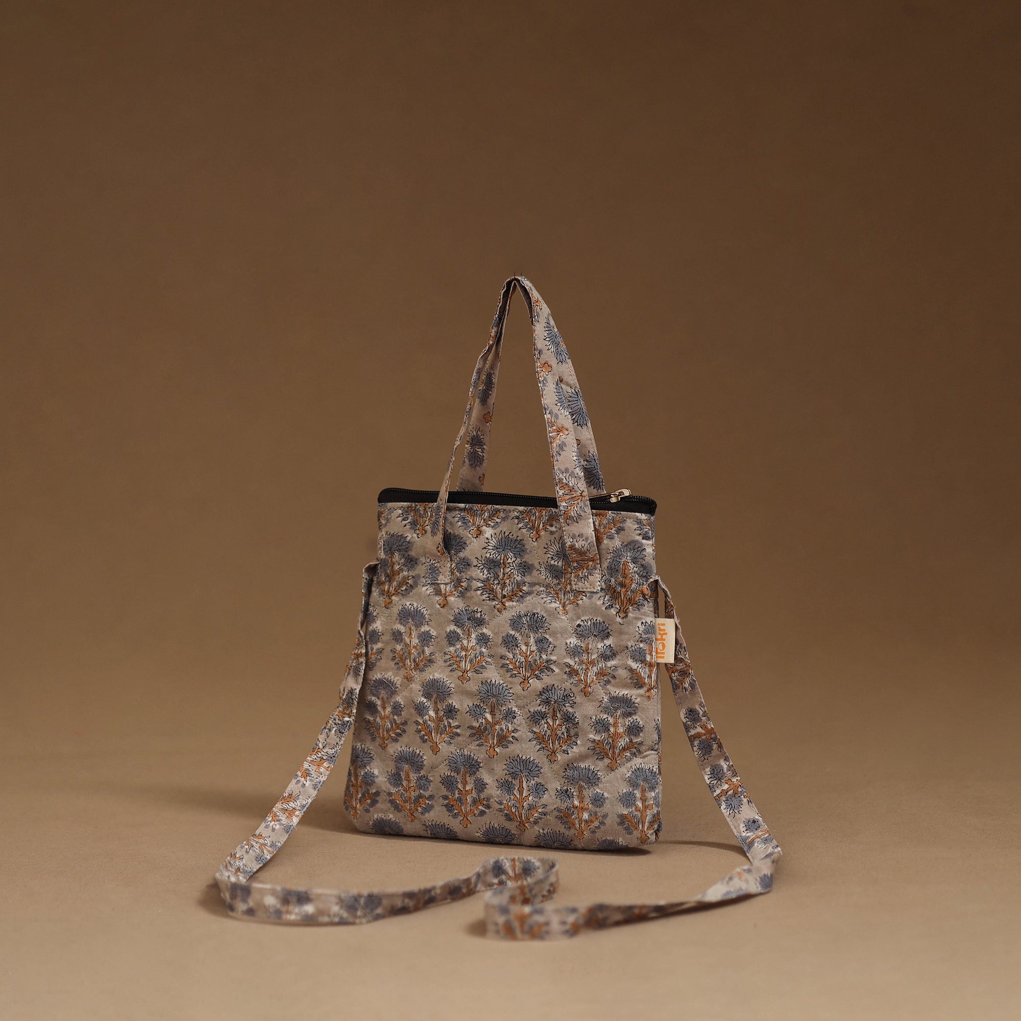 Make every outing stylish with this handmade sling bag in cotton. Designed with quilted layers for added safety, it features four pockets to carry your everyday essentials. Comfortable to use for daily activities, trips or casual outings.
