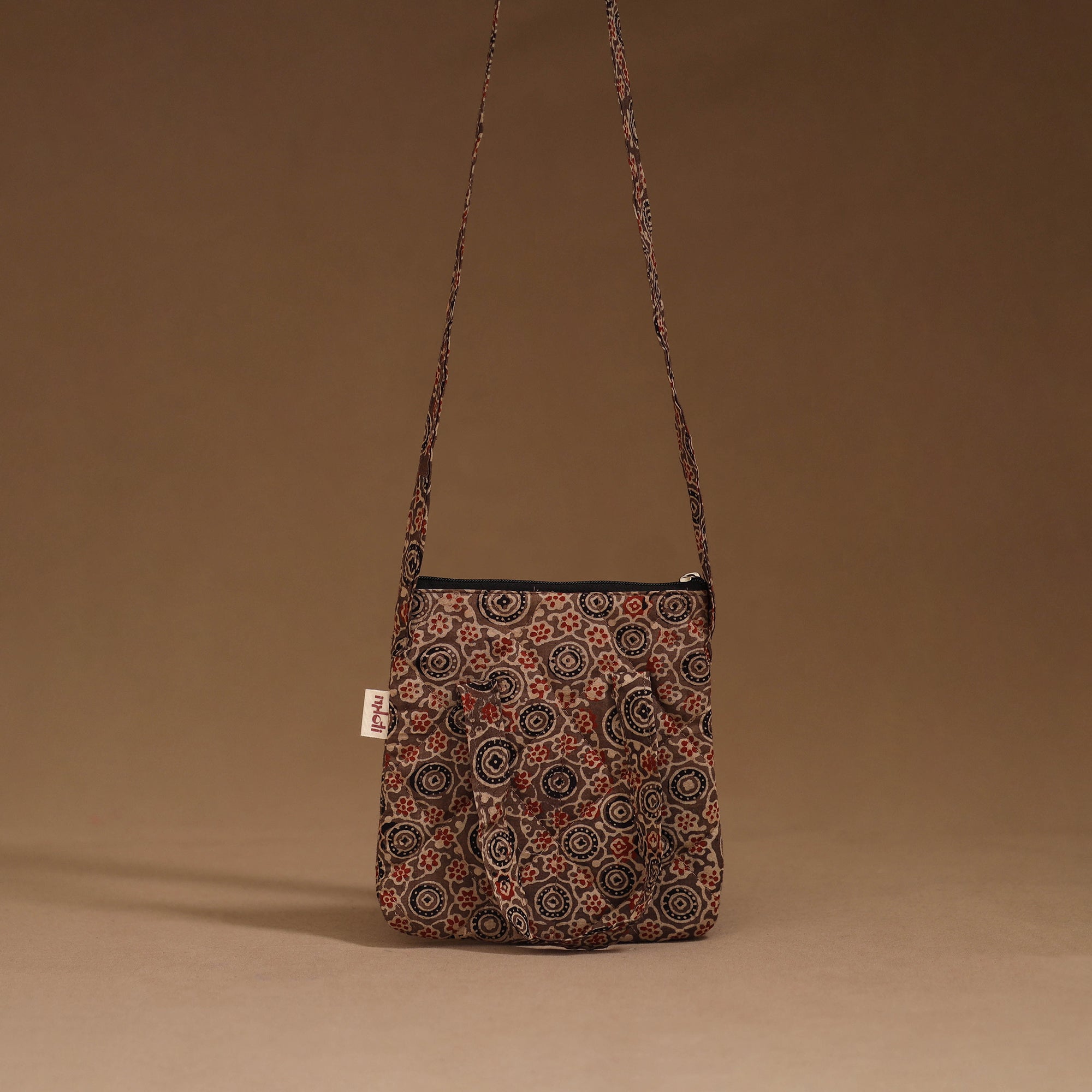 Make every outing stylish with this handmade sling bag in cotton. Designed with quilted layers for added safety, it features four pockets to carry your everyday essentials. Comfortable to use for daily activities, trips or casual outings.