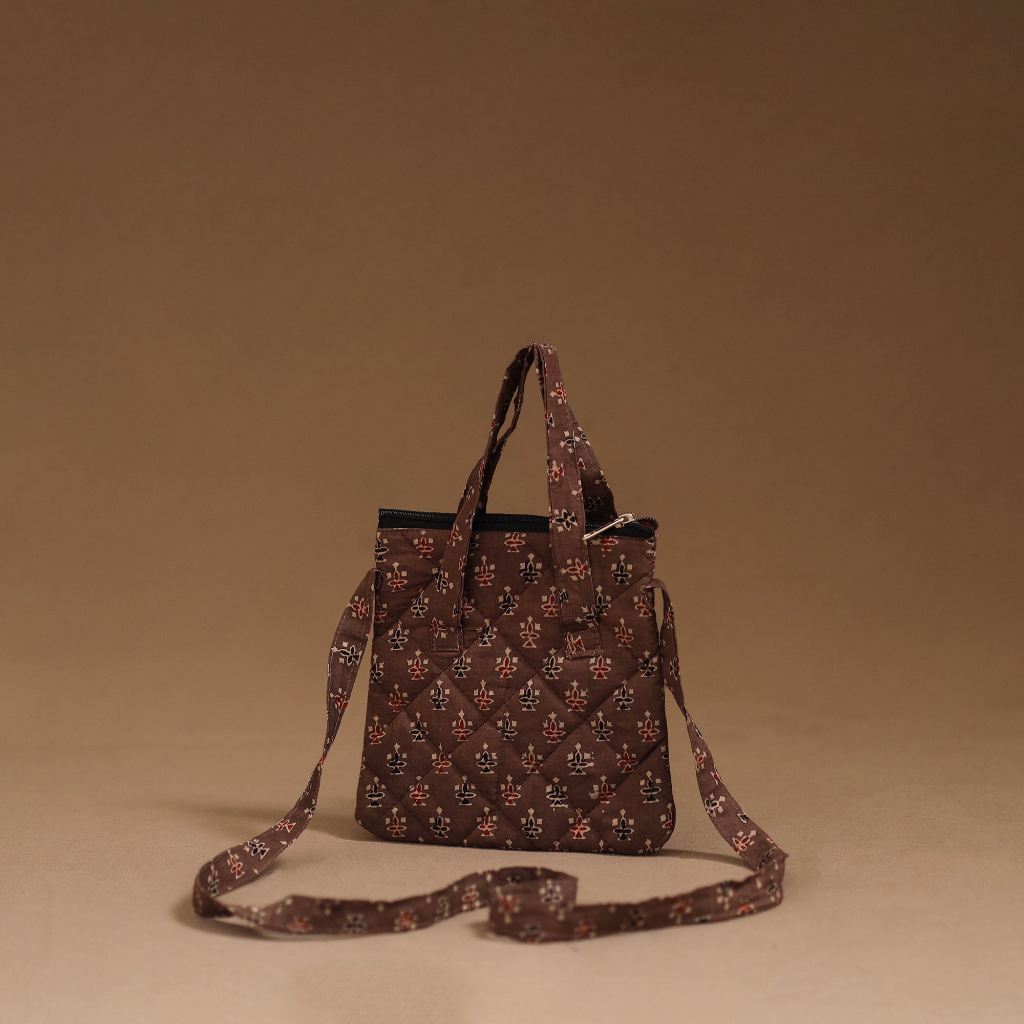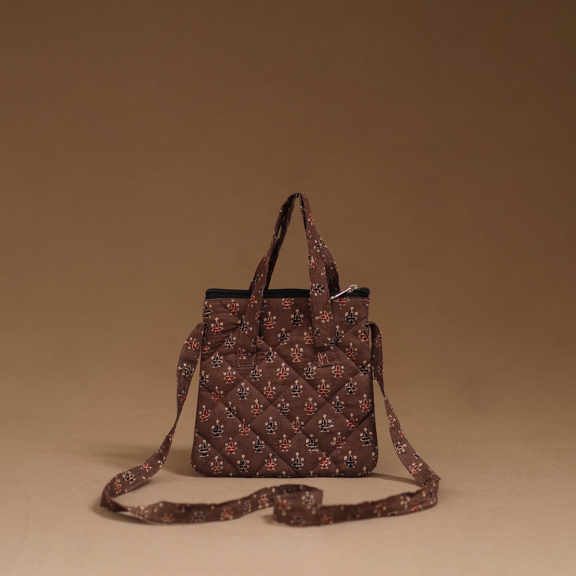 Make every outing stylish with this handmade sling bag in cotton. Designed with quilted layers for added safety, it features four pockets to carry your everyday essentials. Comfortable to use for daily activities, trips or casual outings.