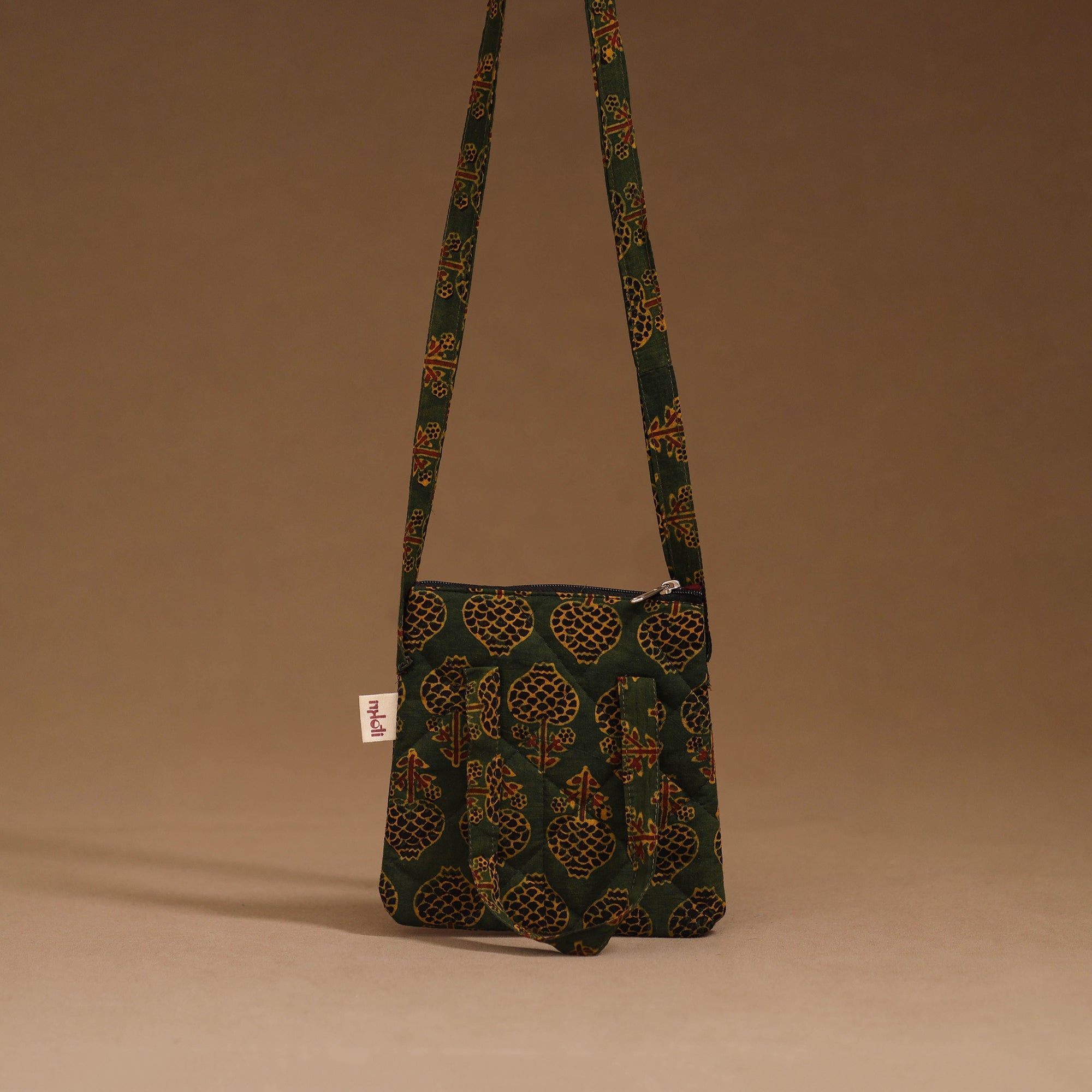 Make every outing stylish with this handmade sling bag in cotton. Designed with quilted layers for added safety, it features four pockets to carry your everyday essentials. Comfortable to use for daily activities, trips or casual outings.