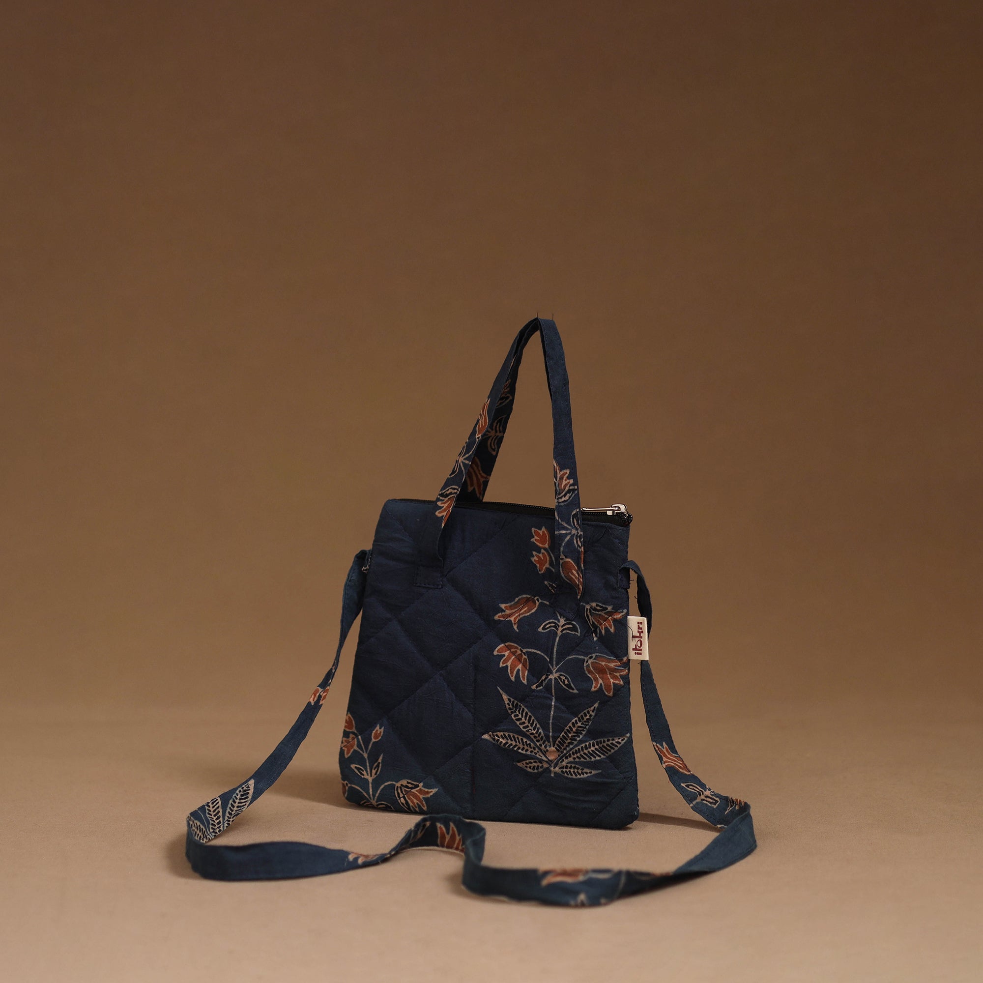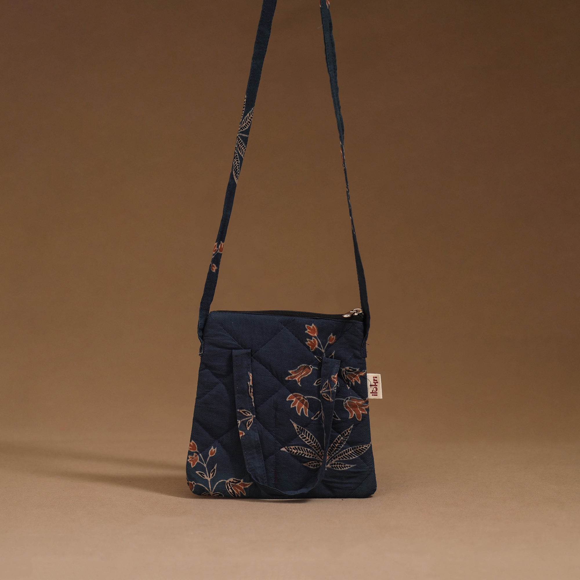 Make every outing stylish with this handmade sling bag in cotton. Designed with quilted layers for added safety, it features four pockets to carry your everyday essentials. Comfortable to use for daily activities, trips or casual outings.