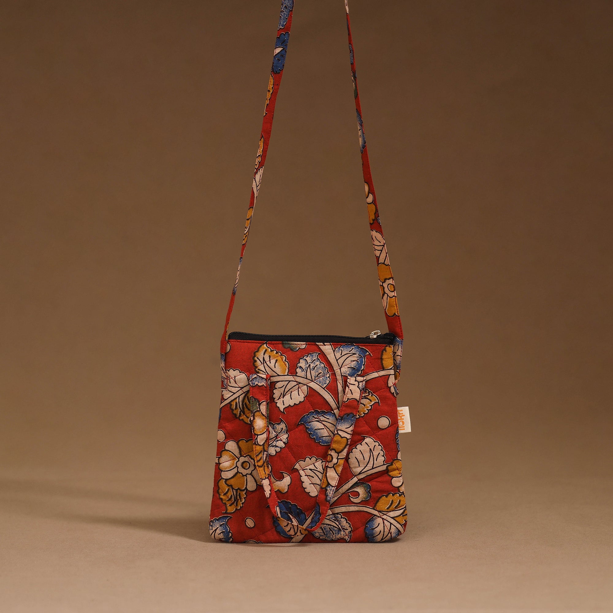 Make every outing stylish with this handmade sling bag in cotton. Designed with quilted layers for added safety, it features four pockets to carry your everyday essentials. Comfortable to use for daily activities, trips or casual outings.