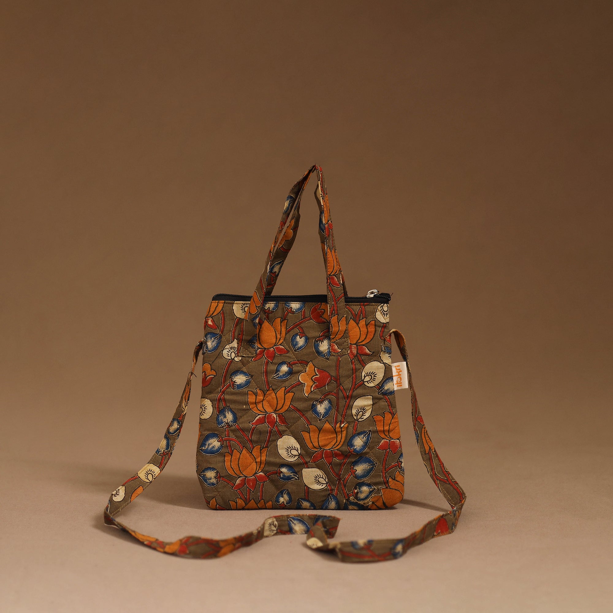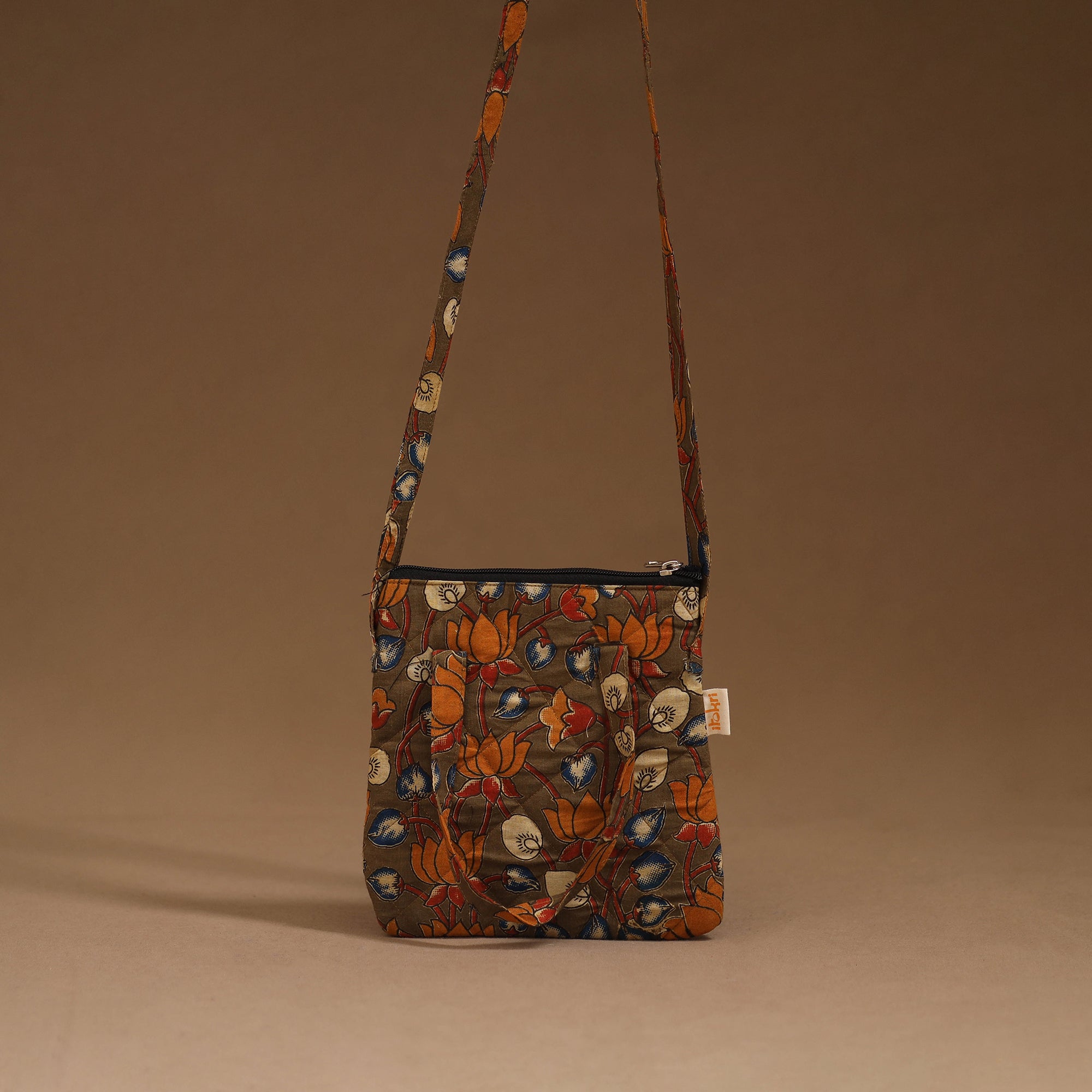 Make every outing stylish with this handmade sling bag in cotton. Designed with quilted layers for added safety, it features four pockets to carry your everyday essentials. Comfortable to use for daily activities, trips or casual outings.