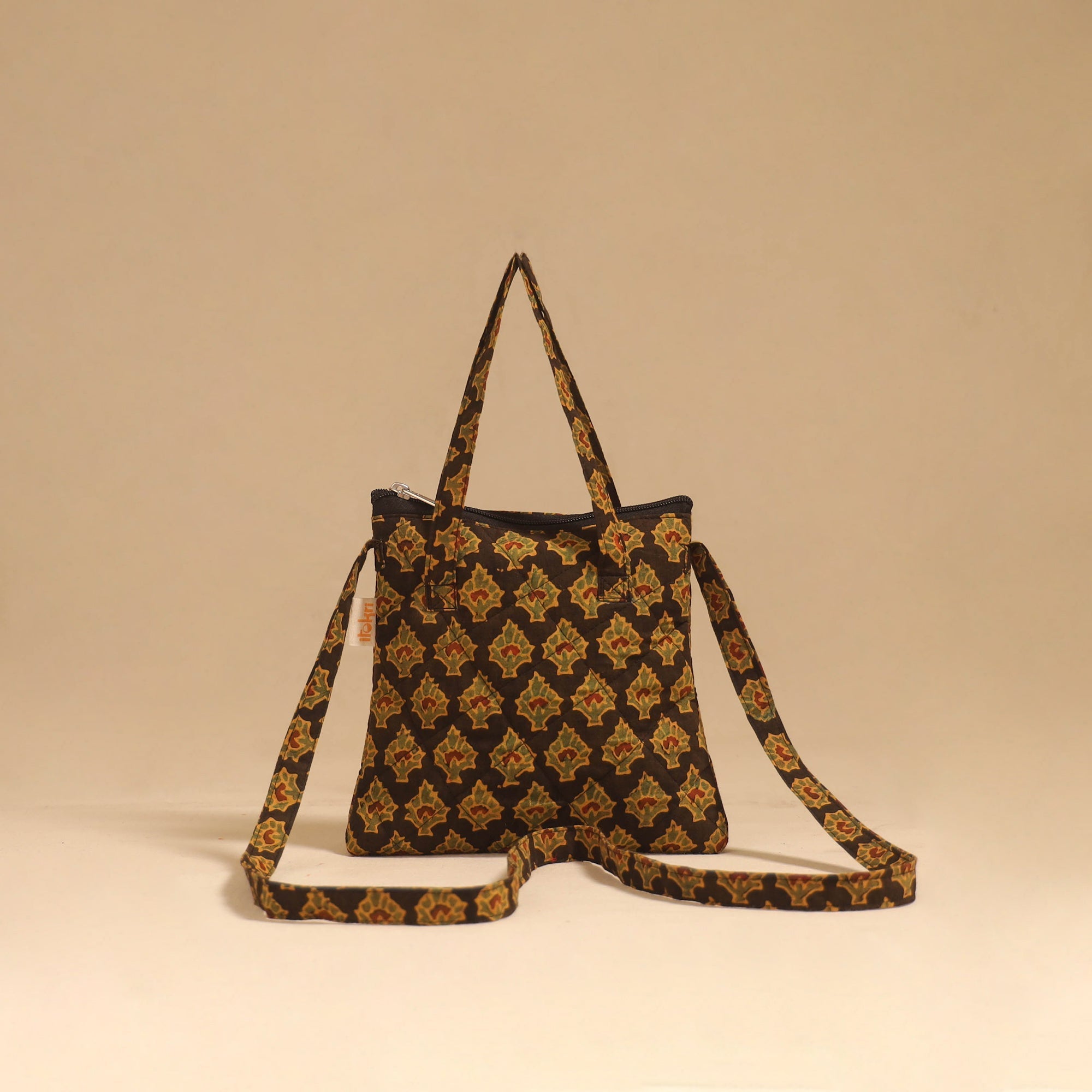 | Material | Make every outing stylish with this brown handmade sling bag in cotton, detailed with ajrakh hand block prints. Designed with quilted layers for added safety, it features four pockets to carry your everyday essentials. Comfortable to use for daily activities, trips or casual outings. |