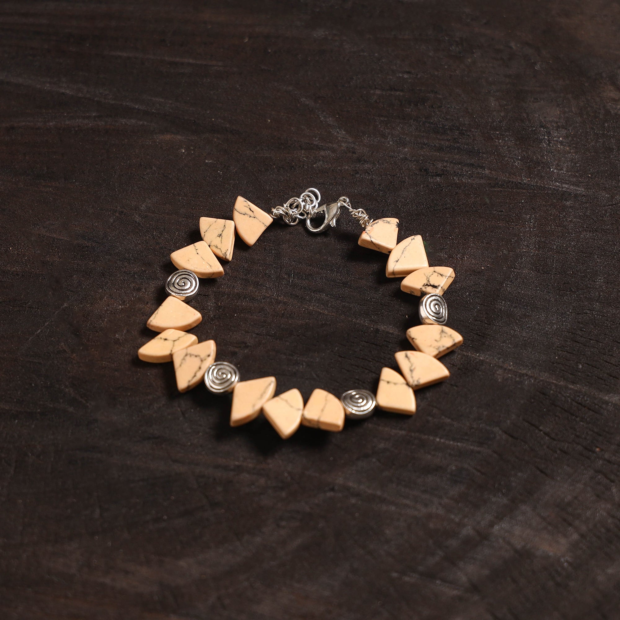 | Material | A handcrafted beige bracelet featuring carefully set stones and german silver, adding a bright, artisanal touch to your look. Pair it with everyday outfits or festive wear, this piece works well as a simple style upgrade or a thoughtful gift. |