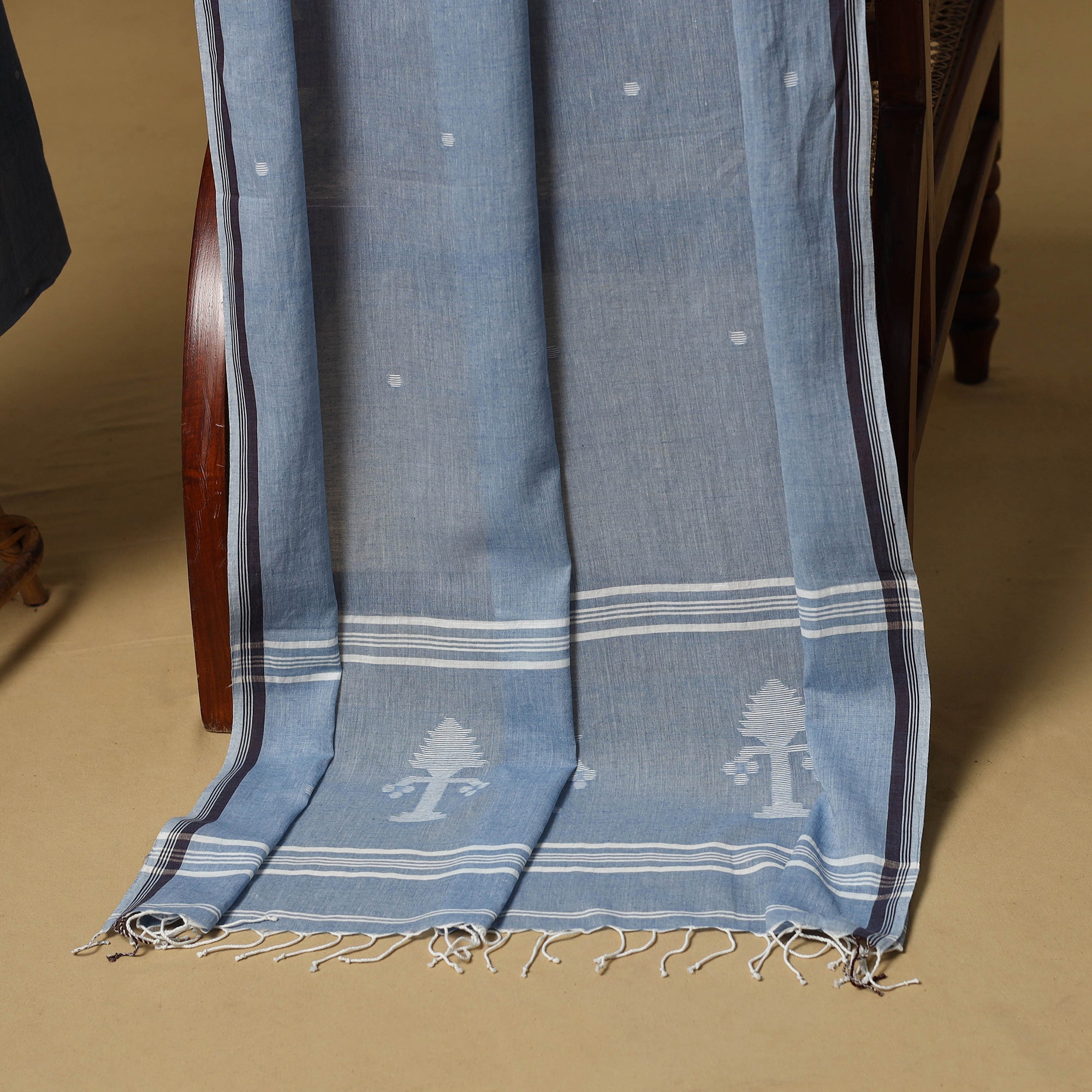 Bengal jamdani cotton 2pc unstitched dress material is thoughtfully woven by skilled artisans from Bengal using the traditional extra-weft technique. Each motif is created directly on the loom, resulting in an embroidery-like appearance without any surface embellishment. Jamdani is among the most time-intensive and treasured weaving traditions of India. The 2pc set includes kurta fabric with a coordinated dupatta, making it ideal for festive gatherings, cultural events, office wear or elegant daytime outings where comfort meets understated grace.