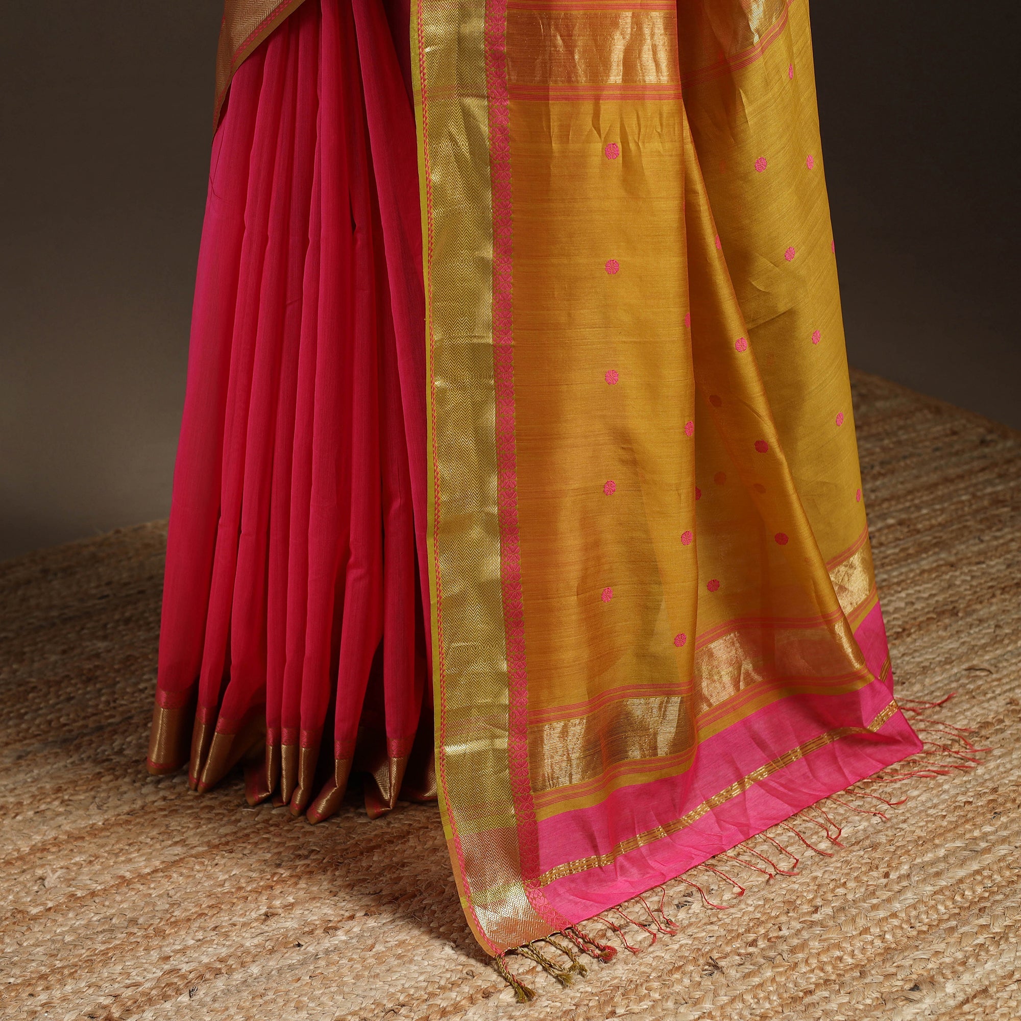 • Pink - handloom buti maheshwari saree with thread zari