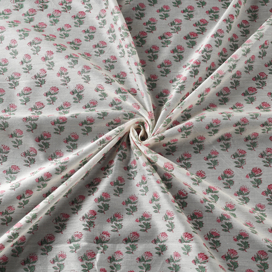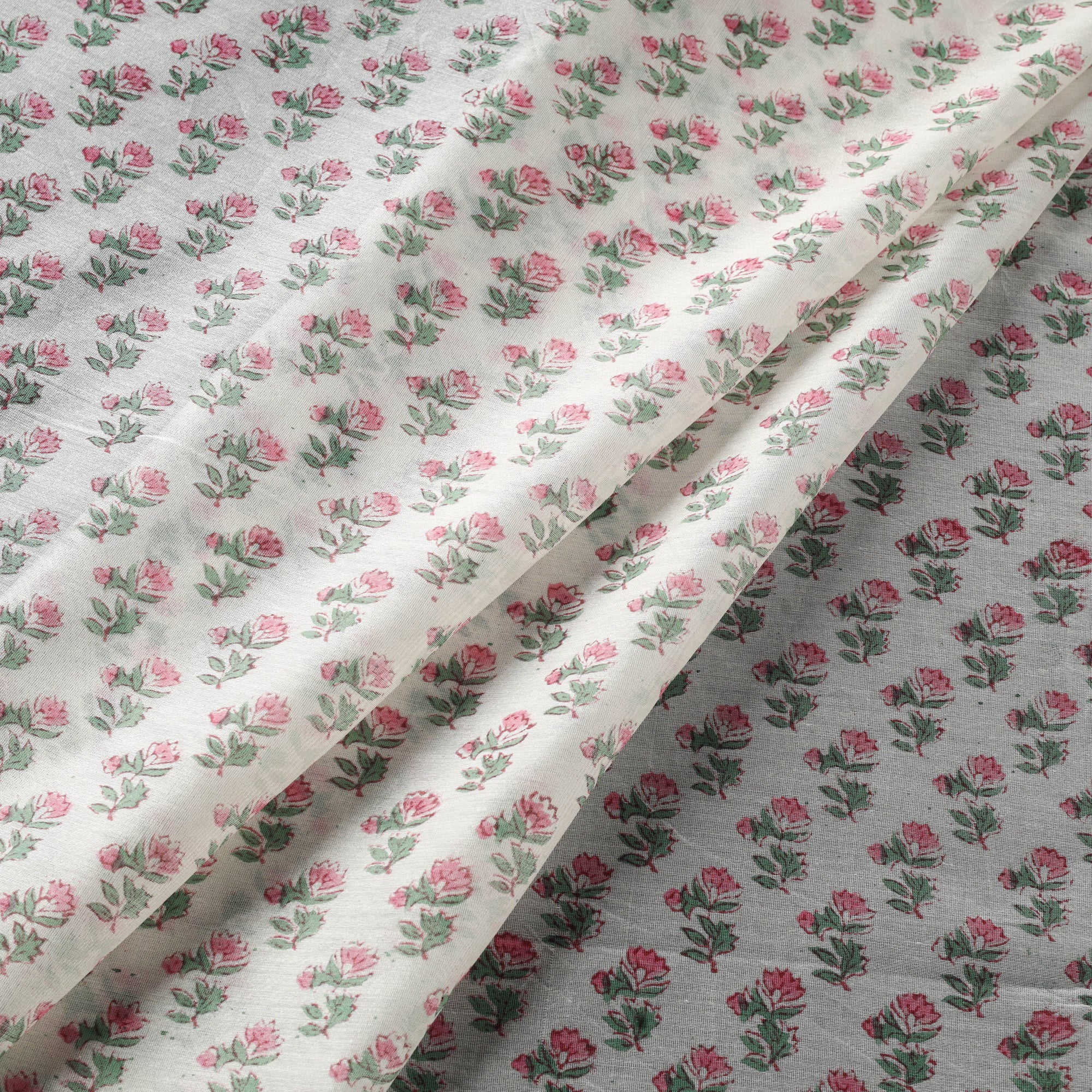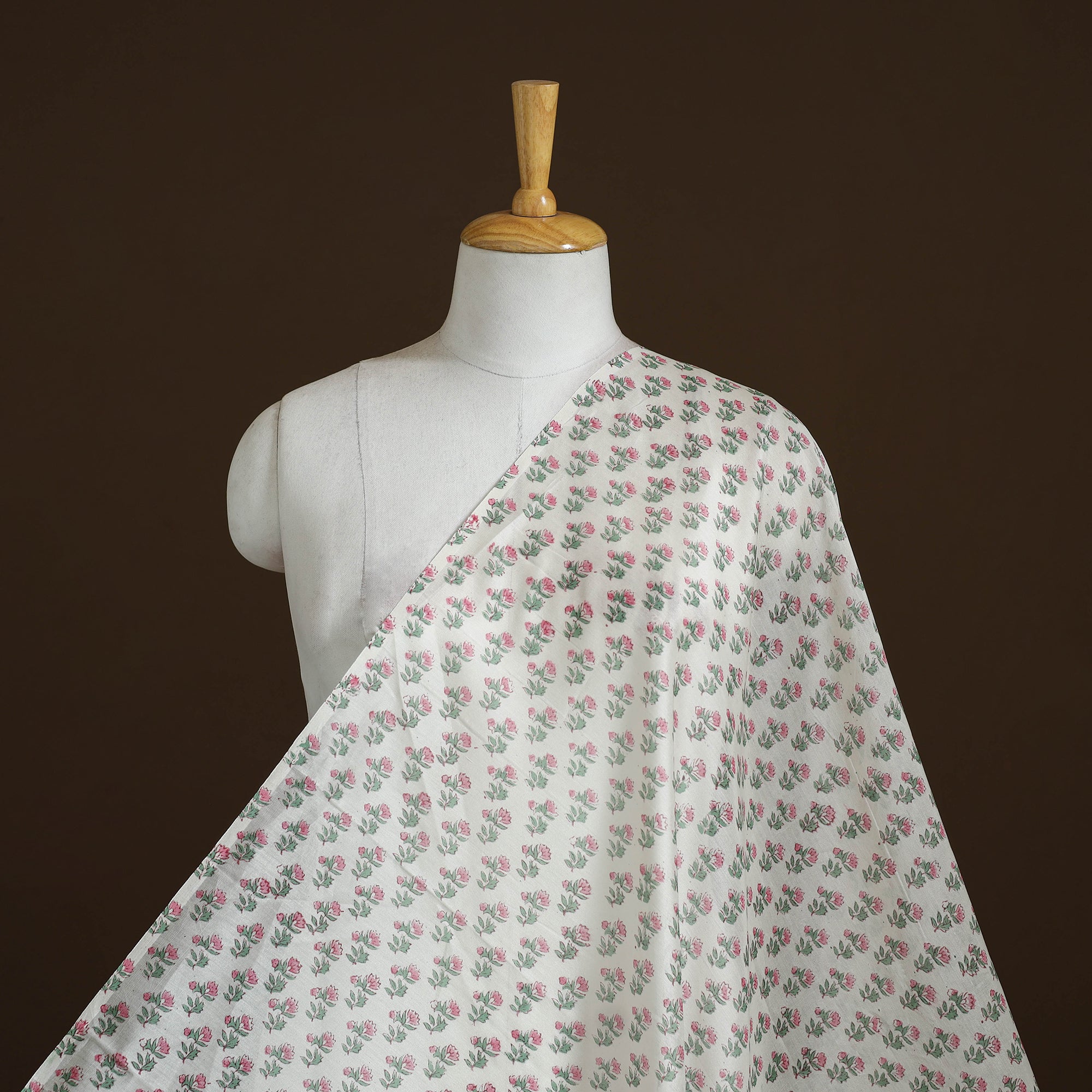 White - Handloom Chanderi Silk Block Print Sanganeri Fabric 03