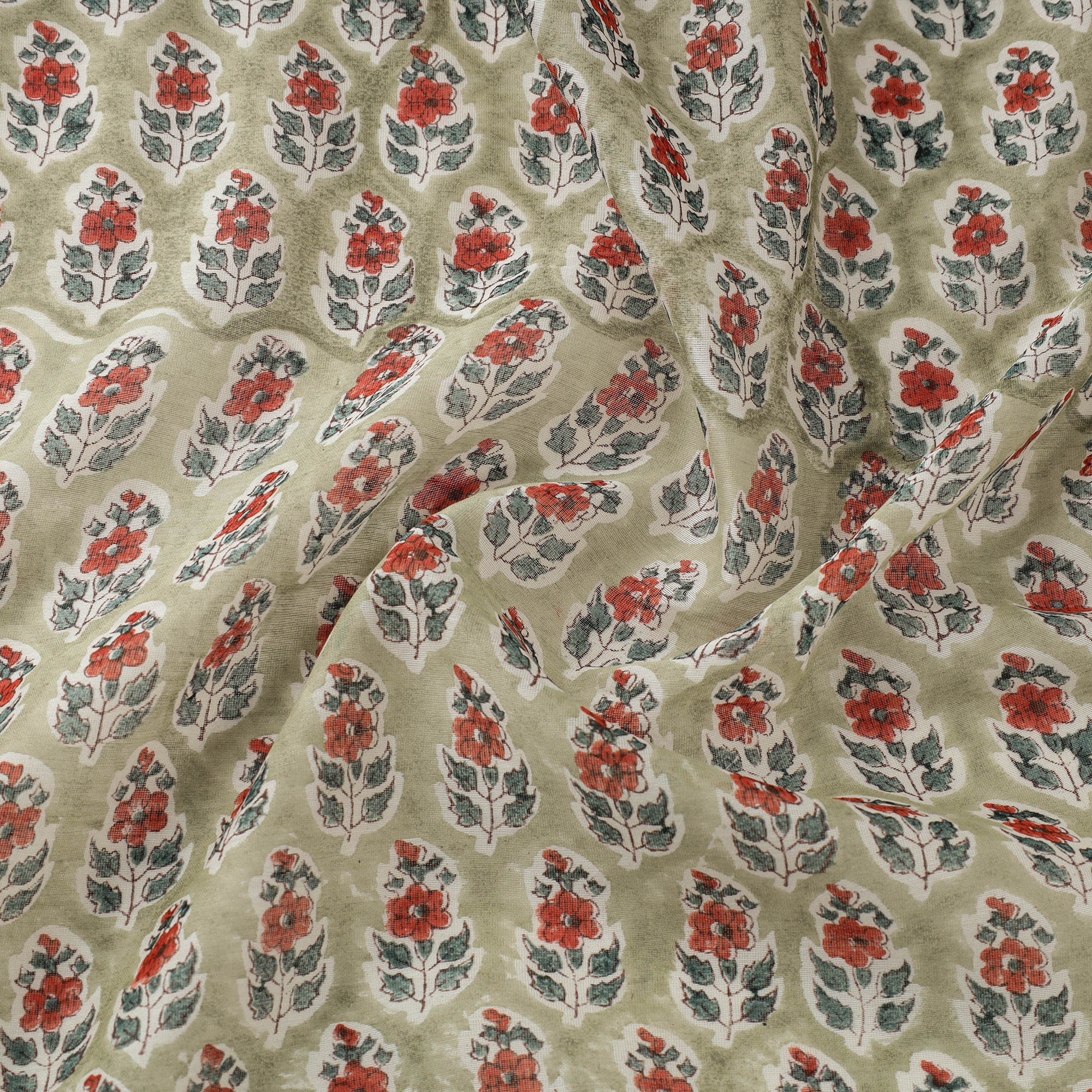 Green - Hand Block Print Slub Cotton Sanganeri Fabric 12