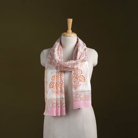 | Material | Pink sanganeri stole with a zari border from Rajasthan features intricate floral motifs created using traditional hand block printing techniques. Crafted with VAT dyes for vibrant, long-lasting colours. Made from chanderi silk cotton, known for its fine weave and light airy texture. Note : This piece carries tiny knots, thread pulls or uneven lines not flaws but fingerprints. Every irregularity is a whisper from the hands that made it. It’s what happens when tradition weaves through time not machines. If you’re looking for perfection, this isn’t it. But if you’re looking for soul you’ve found it. |