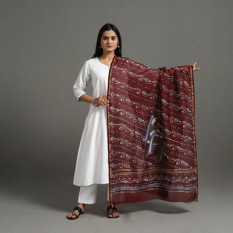 Step into the vibrant heritage of Ujjain with this exquisite handloom chanderi silk hand batik printed dupatta. Made from a blend of chanderi silk and cotton crafted using the ancient wax-resist dyeing technique, every piece tells a story of timeless artistry and tradition. Pair it with your ethnic wear and support artisan livelihoods.