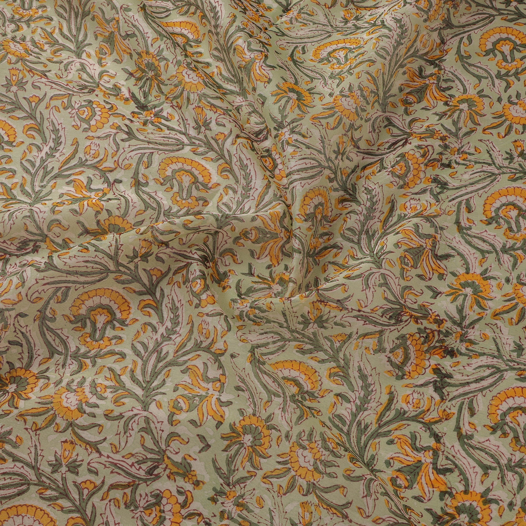Handloom Chanderi Silk Hand Block Print Sanganeri Fabric 06