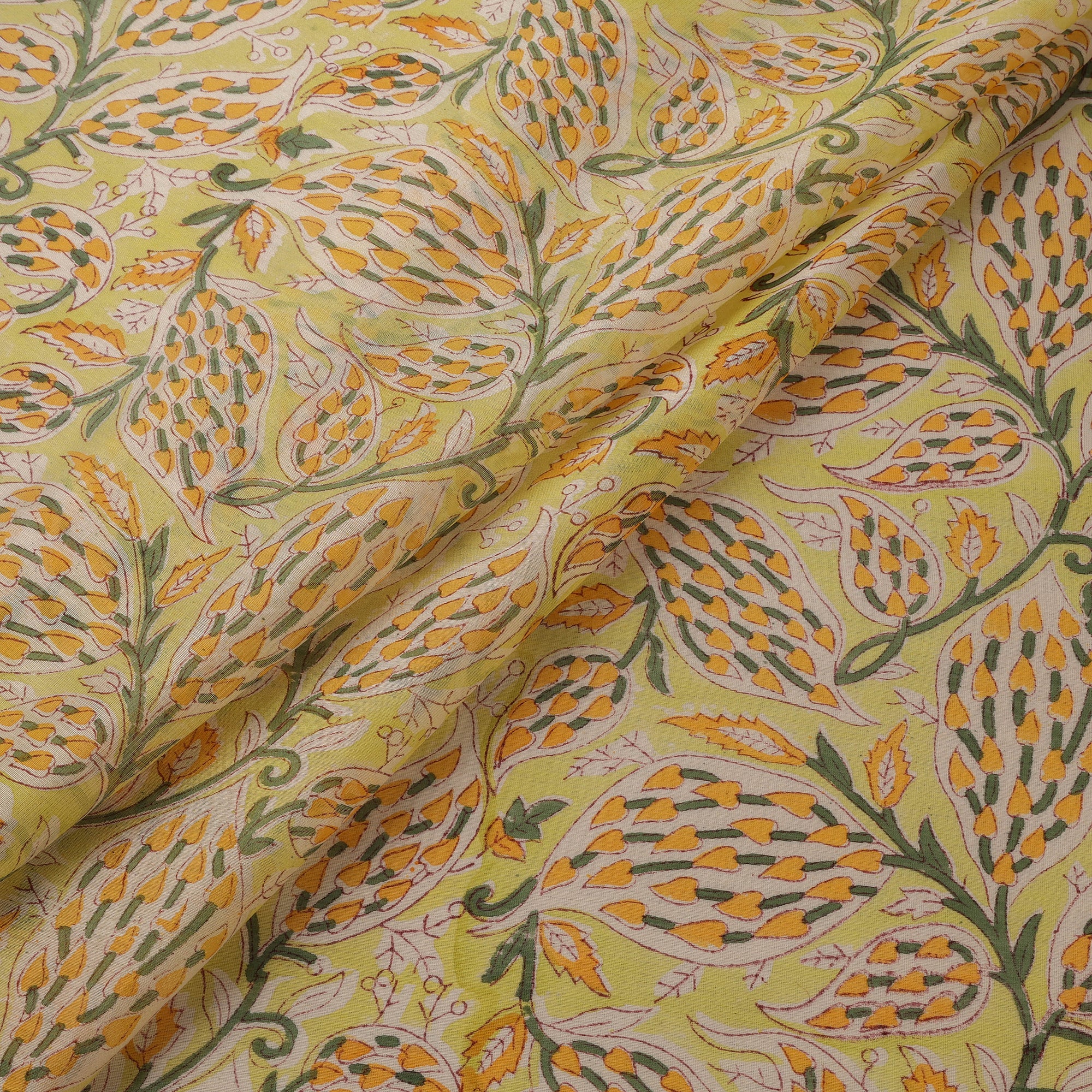Hand block printed handloom chanderi silk cotton fabric from Rajasthan is crafted by skilled artisans and features delicate sanganeri motifs. Sanganeri hand block printing is a centuries-old technique, practiced for over 500 years, known for its fine detailing and graceful patterns. Dyed using bleed-free VAT colours, it is lightweight and elegant, making it ideal for creating thoughtful apparel or home decor. An easy way to infuse cultural charm into your everyday designs.