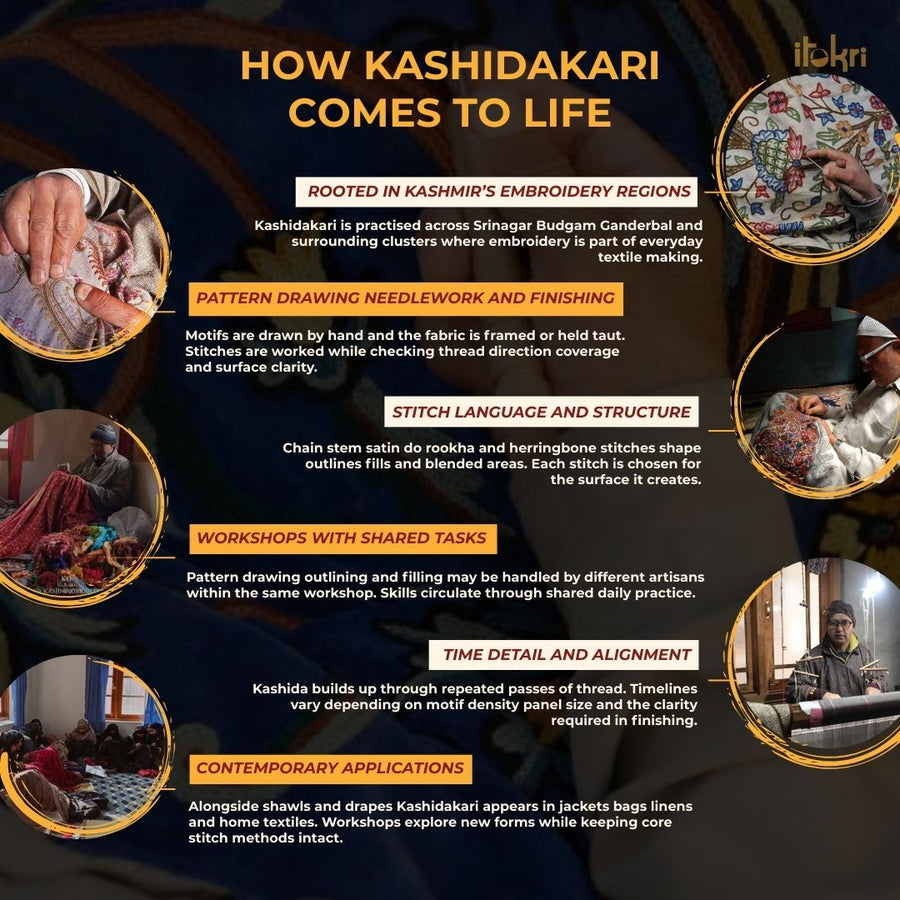 Kashida embroidery is recognized to be one of the maximum historical and traditional forms of intrinsic art, Kashida Embroidery, also spelled as Kasida defines its cultural essence via the medium of bead and thread work, which has won maximum popularity in Jammu & Kashmir.