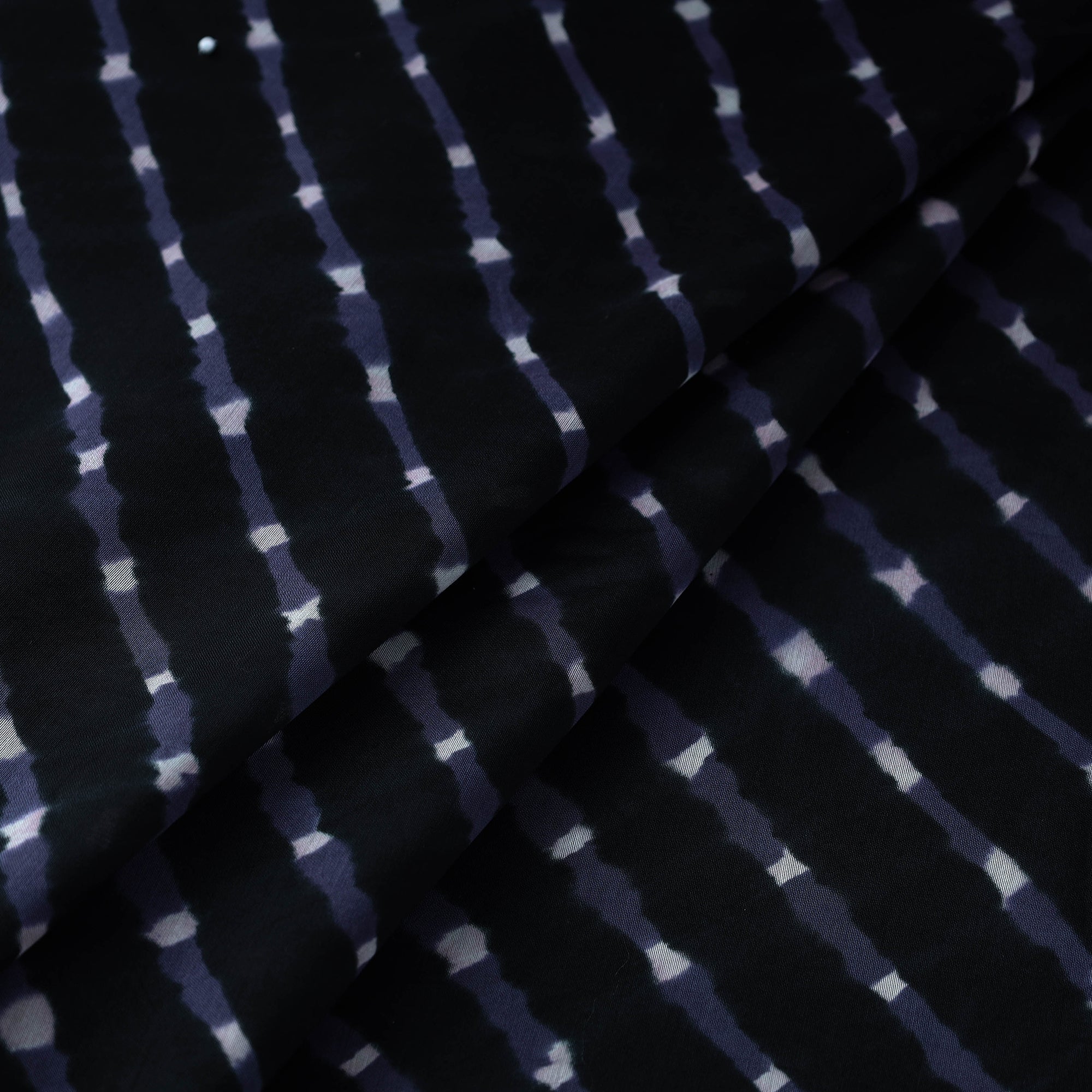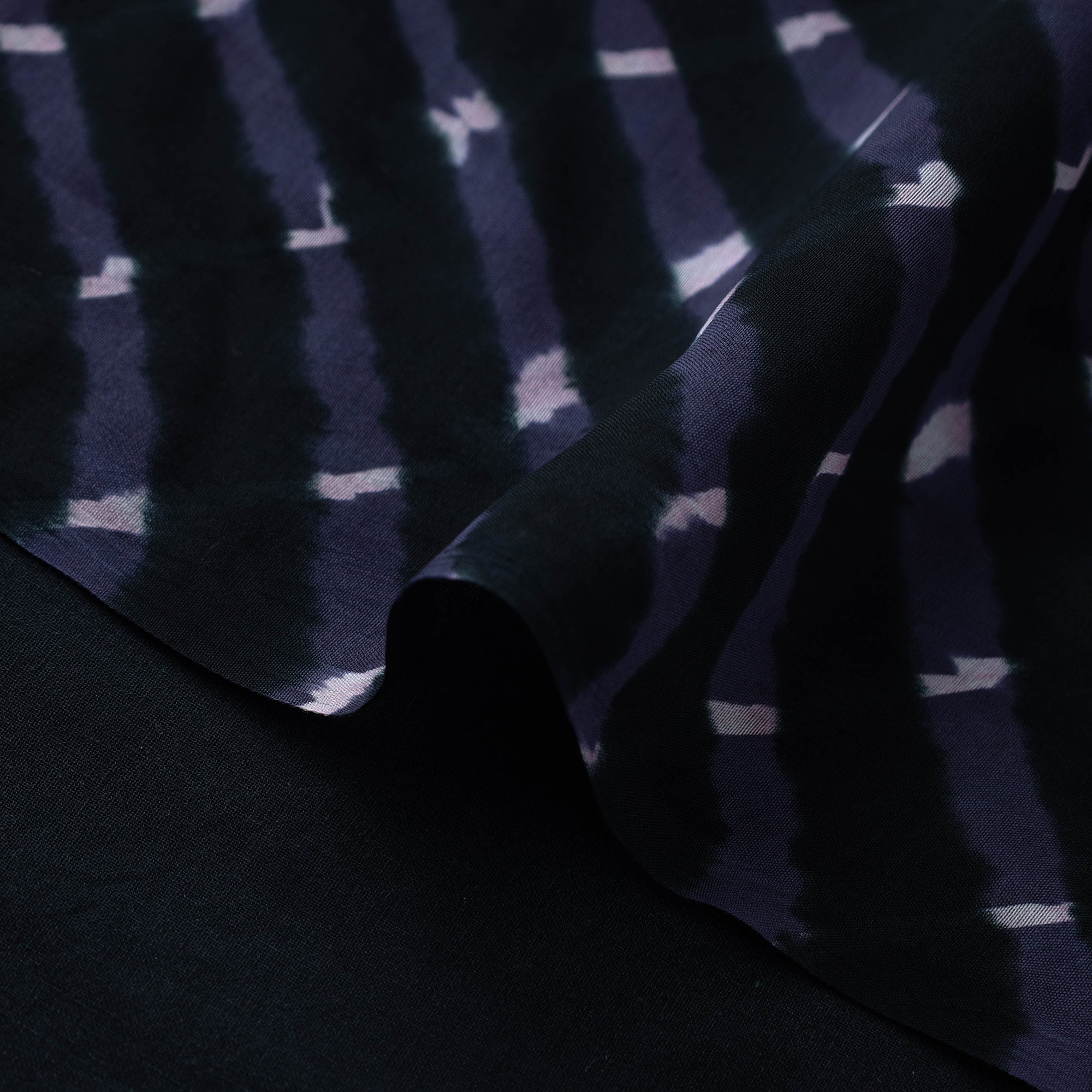 Discover the beauty of tradition with this black handloom chanderi silk cotton mothra tie-dye leheriya fabric, featuring wavy patterns handcrafted by the master artisans of Badshah Miyan’s family. Sustainably sourced and dyed with care, its lightweight texture and vibrant design make it ideal for creating elegant sarees, dupattas, or outfits that celebrate craftsmanship and modern grace.
