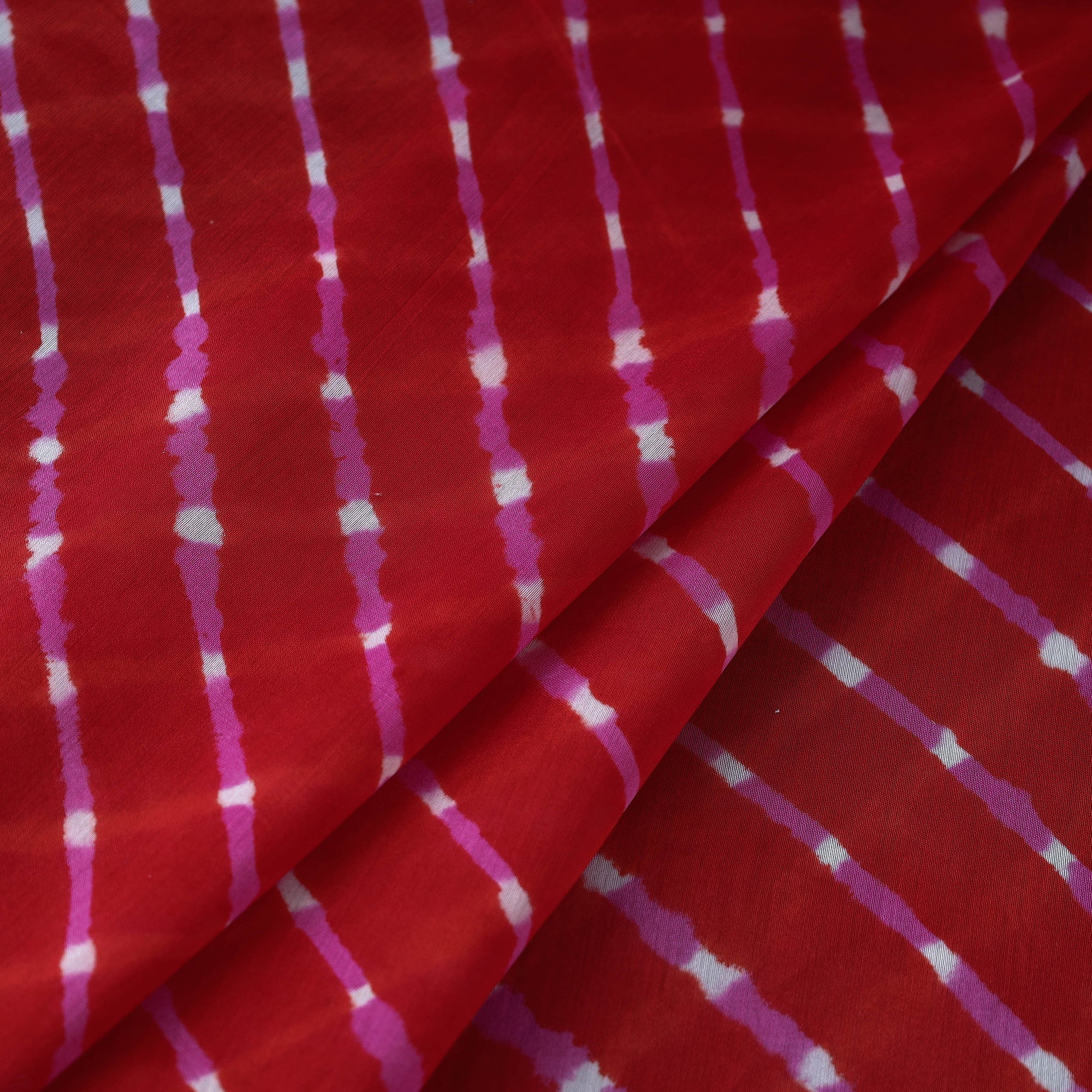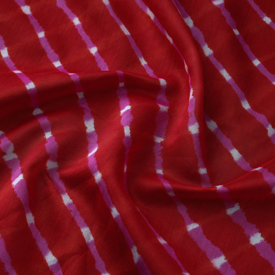 Discover the beauty of tradition with this red handloom chanderi silk cotton mothra tie-dye leheriya fabric, featuring wavy patterns handcrafted by the master artisans of Badshah Miyan’s family. Sustainably sourced and dyed with care, its lightweight texture and vibrant design make it ideal for creating elegant sarees, dupattas, or outfits that celebrate craftsmanship and modern grace.