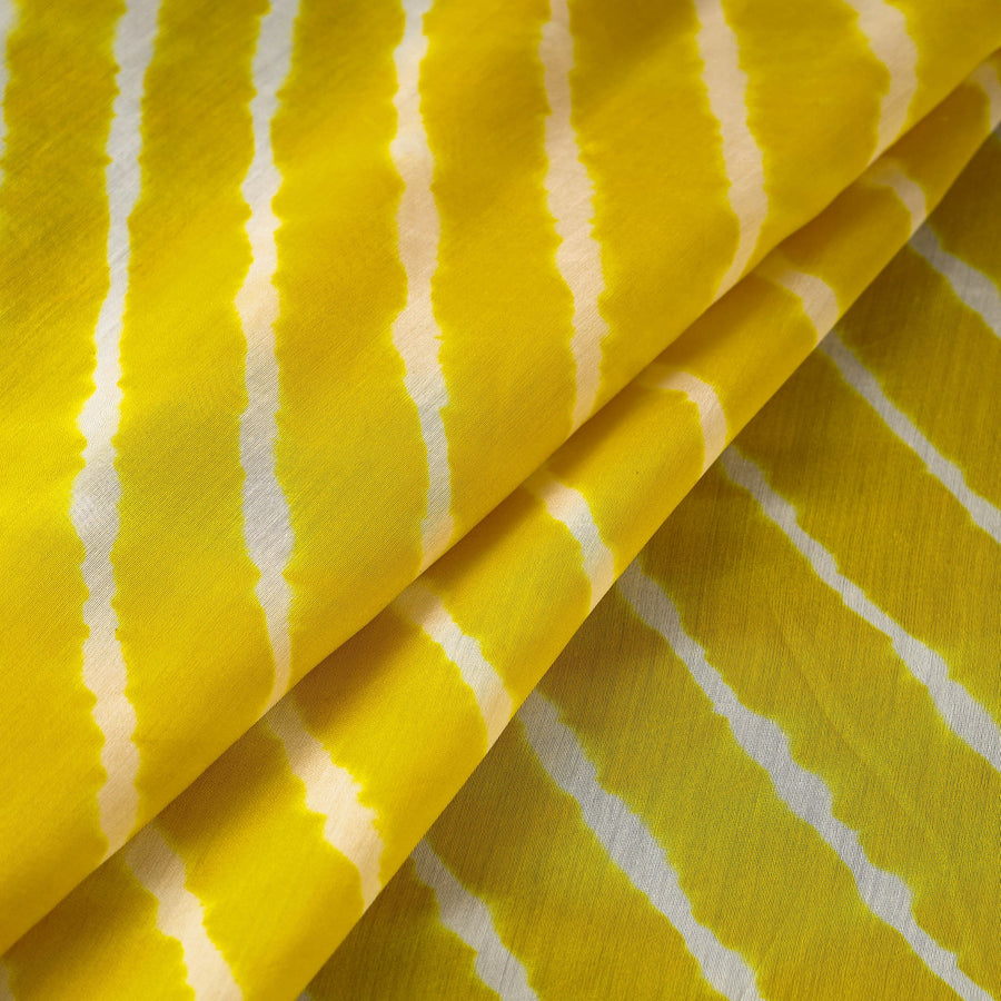 Discover the beauty of tradition with this yellow handloom chanderi silk cotton tie-dye Leheriya Fabric, featuring iconic wavy patterns handcrafted by the master artisans of Badshah Miyan’s family. Sustainably sourced and dyed with care, its lightweight texture and vibrant design make it ideal for creating elegant sarees, dupattas, or outfits that celebrate craftsmanship and modern grace.