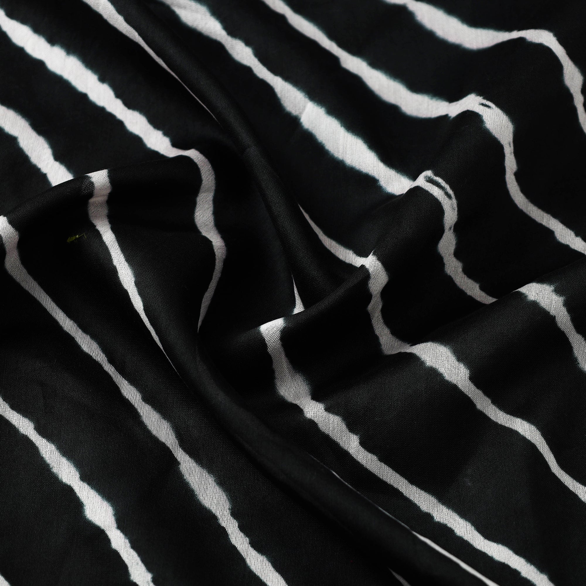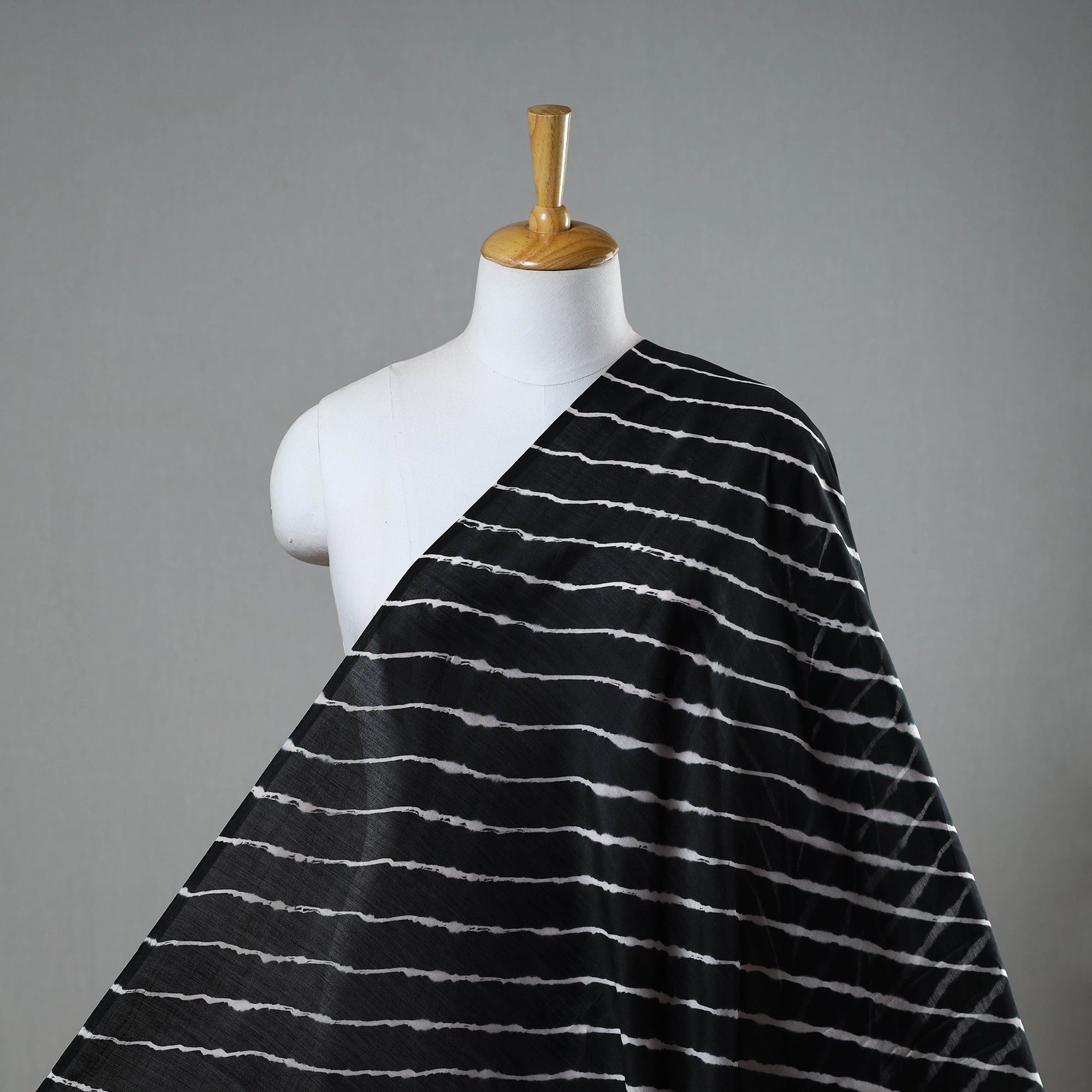 Discover the beauty of tradition with this black handloom chanderi silk cotton tie-dye Leheriya Fabric, featuring iconic wavy patterns handcrafted by the master artisans of Badshah Miyan’s family. Sustainably sourced and dyed with care, its lightweight texture and vibrant design make it ideal for creating elegant sarees, dupattas, or outfits that celebrate craftsmanship and modern grace.