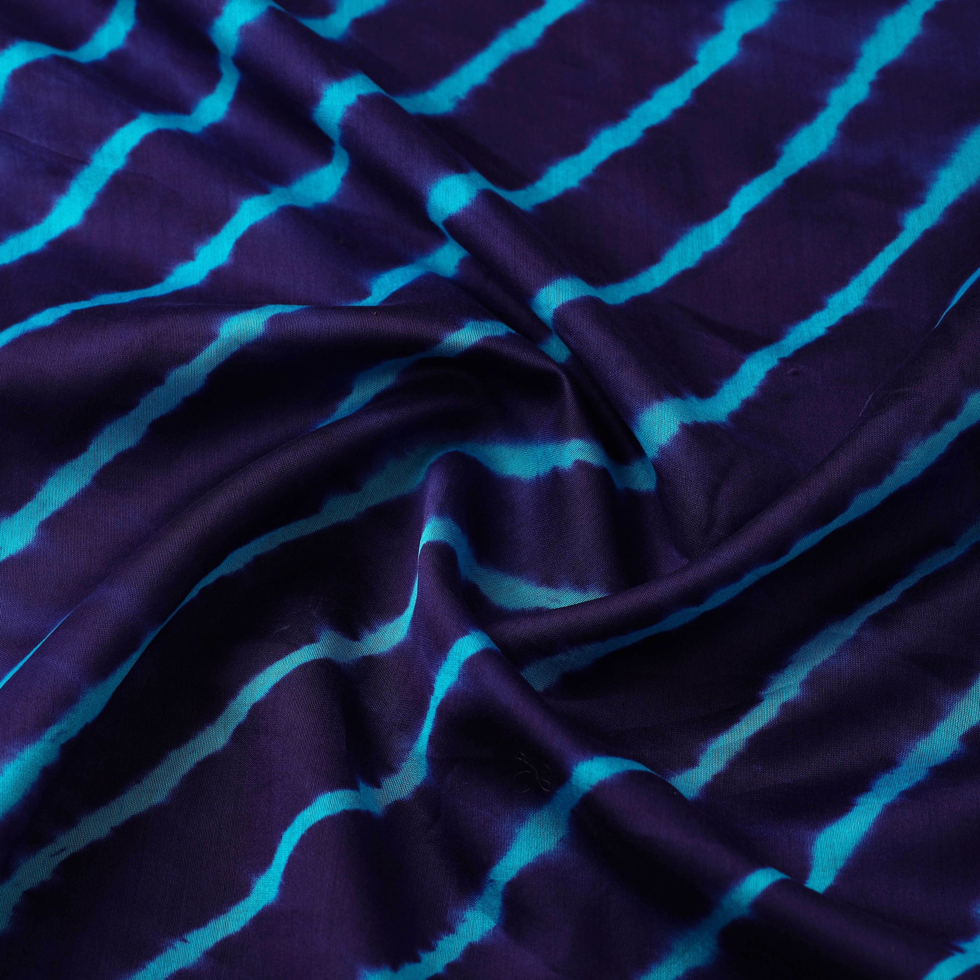 Discover the beauty of tradition with this blue handloom chanderi silk cotton tie-dye Leheriya Fabric, featuring iconic wavy patterns handcrafted by the master artisans of Badshah Miyan’s family. Sustainably sourced and dyed with care, its lightweight texture and vibrant design make it ideal for creating elegant sarees, dupattas, or outfits that celebrate craftsmanship and modern grace.