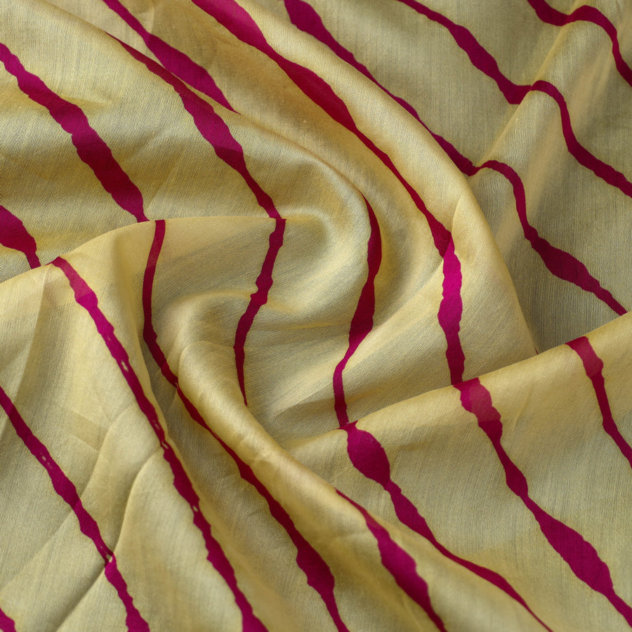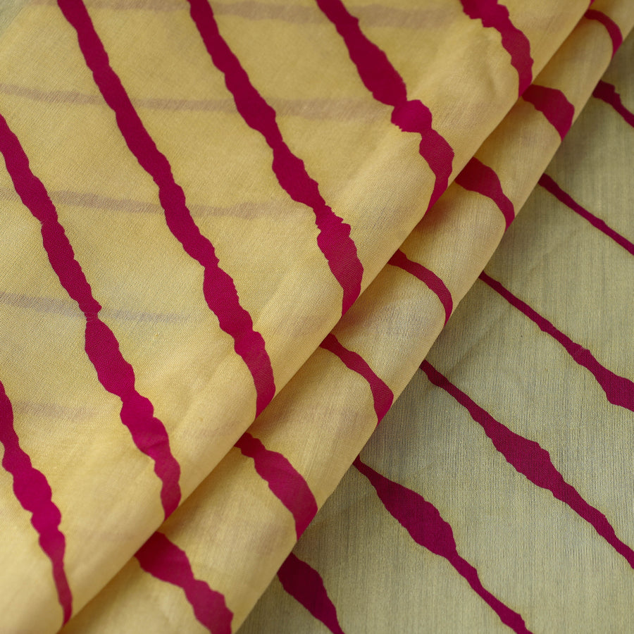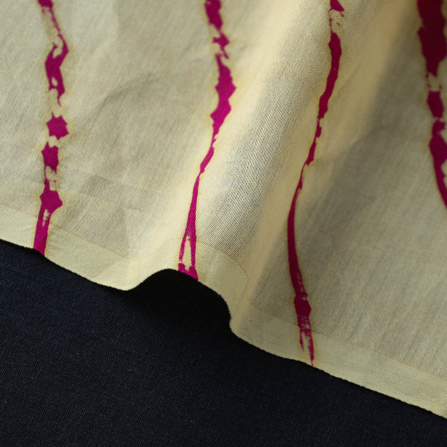 Discover the beauty of tradition with this beige handloom chanderi silk cotton tie-dye Leheriya Fabric, featuring iconic wavy patterns handcrafted by the master artisans of Badshah Miyan’s family. Sustainably sourced and dyed with care, its lightweight texture and vibrant design make it ideal for creating elegant sarees, dupattas, or outfits that celebrate craftsmanship and modern grace.
