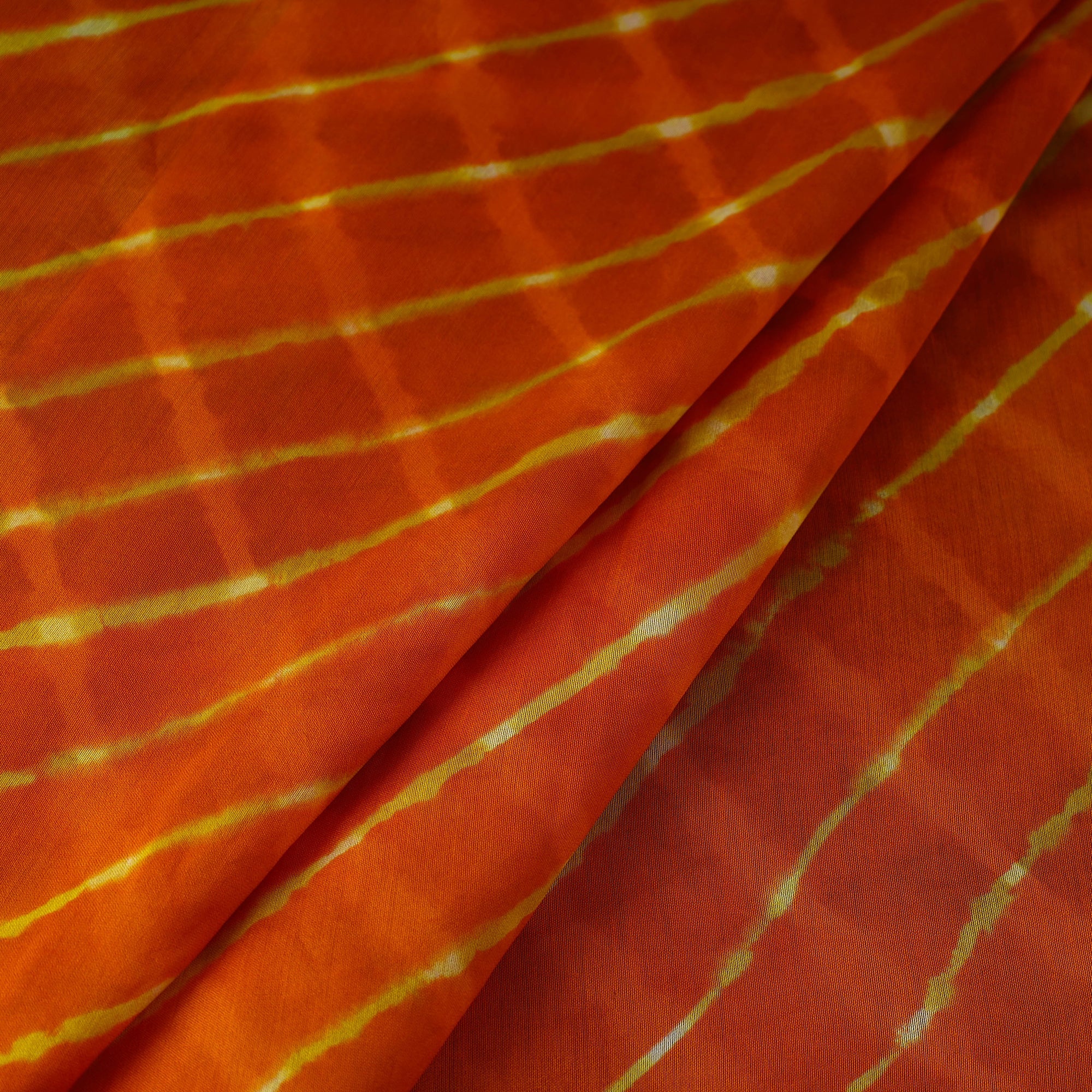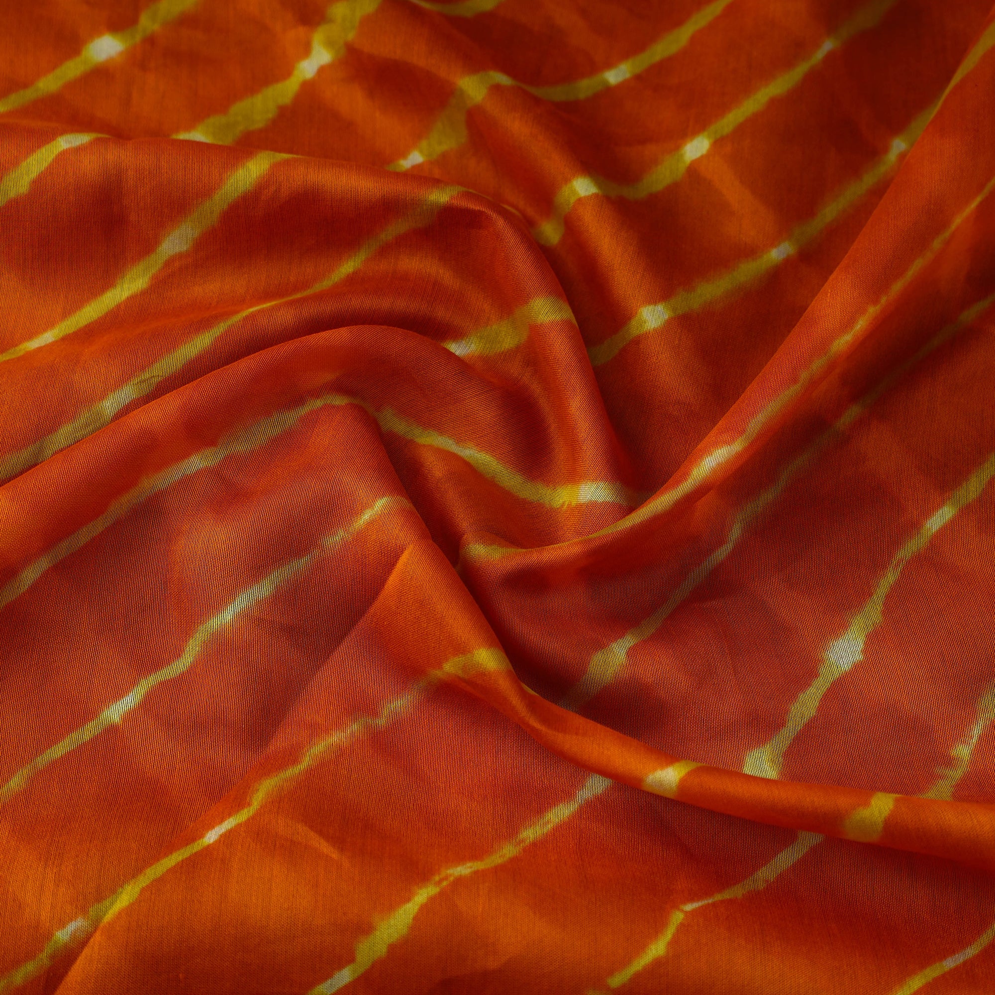 Discover the beauty of tradition with this orange handloom chanderi silk cotton tie-dye Leheriya Fabric, featuring iconic wavy patterns handcrafted by the master artisans of Badshah Miyan’s family. Sustainably sourced and dyed with care, its lightweight texture and vibrant design make it ideal for creating elegant sarees, dupattas, or outfits that celebrate craftsmanship and modern grace.