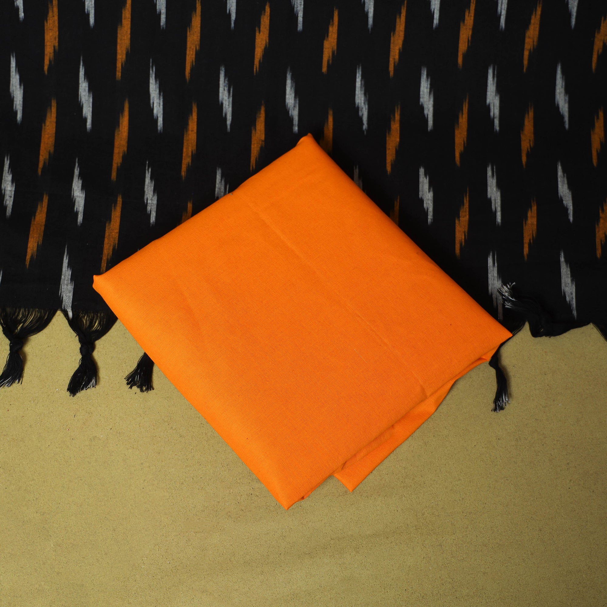 This black 3pcs pochampally Ikat dress material from Telangana, showcases the age-old yarn dyeing technique used to create striking geometric patterns. The set includes a kurta fabric, a plain bottom, and a coordinated dupatta. Elegant yet comfortable, it is perfect for office wear, casual outings, or family gatherings, and also makes a thoughtful gift for those who appreciate traditional textiles.