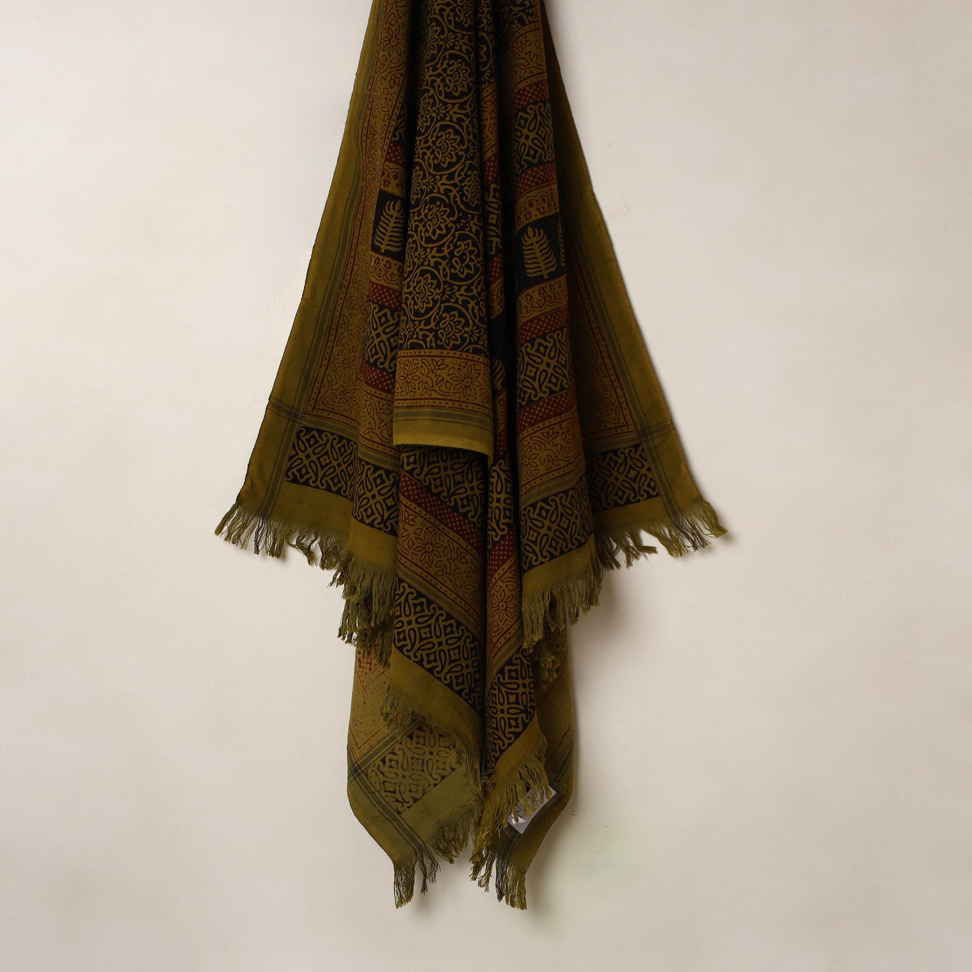 Wrap yourself in the charm of age-old craftsmanship with this green bagh print cotton towel, meticulously created by skilled artisans in Madhya Pradesh. Adorned with intricate patterns and natural dyed with traditional methods, it seamlessly blends artistry with functionality. Soft, highly absorbent, and lightweight, it is an excellent choice for daily use.