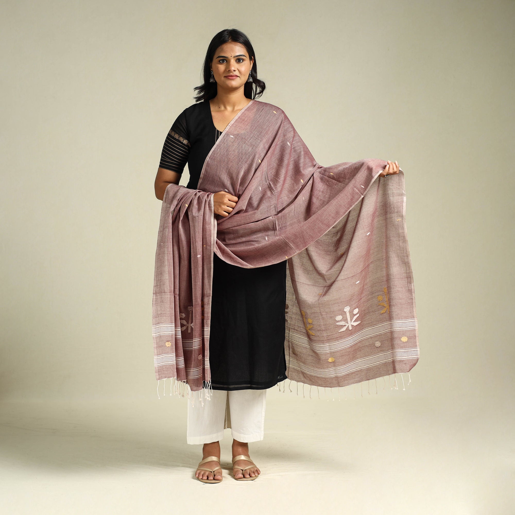 This pink handloom cotton jamdani dupatta with tassels is crafted by the skilled artisans of Bengal. Jamdani’s extra-weft weaving technique, creates delicate embroidery-like motifs directly on the loom. Using tiny shuttles of colored threads passed through the warp, the weaving forms patterns that resemble intricate tapestry work. A beautiful blend of heritage and charm, this lightweight dupatta is perfect for both festive occasions and everyday elegance.