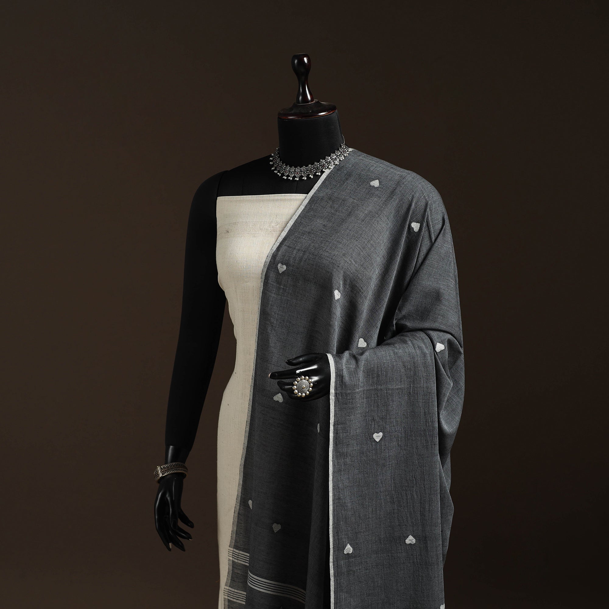 Grey - Handloom Cotton Bengal Jamdani Dupatta 20