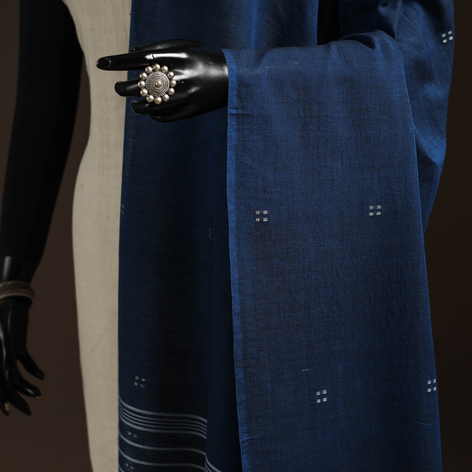 Blue handloom pure cotton jamdani dupatta with tassels is crafted by skilled artisans of Bengal. Jamdani’s is extra-weft weaving technique creates delicate embroidery like patterns directly on the loom. The traditional jamdani motifs woven in the dupatta complete this elegant masterpiece. A perfect blend of tradition this lightweight dupatta is ideal for both special occasions and everyday wear.