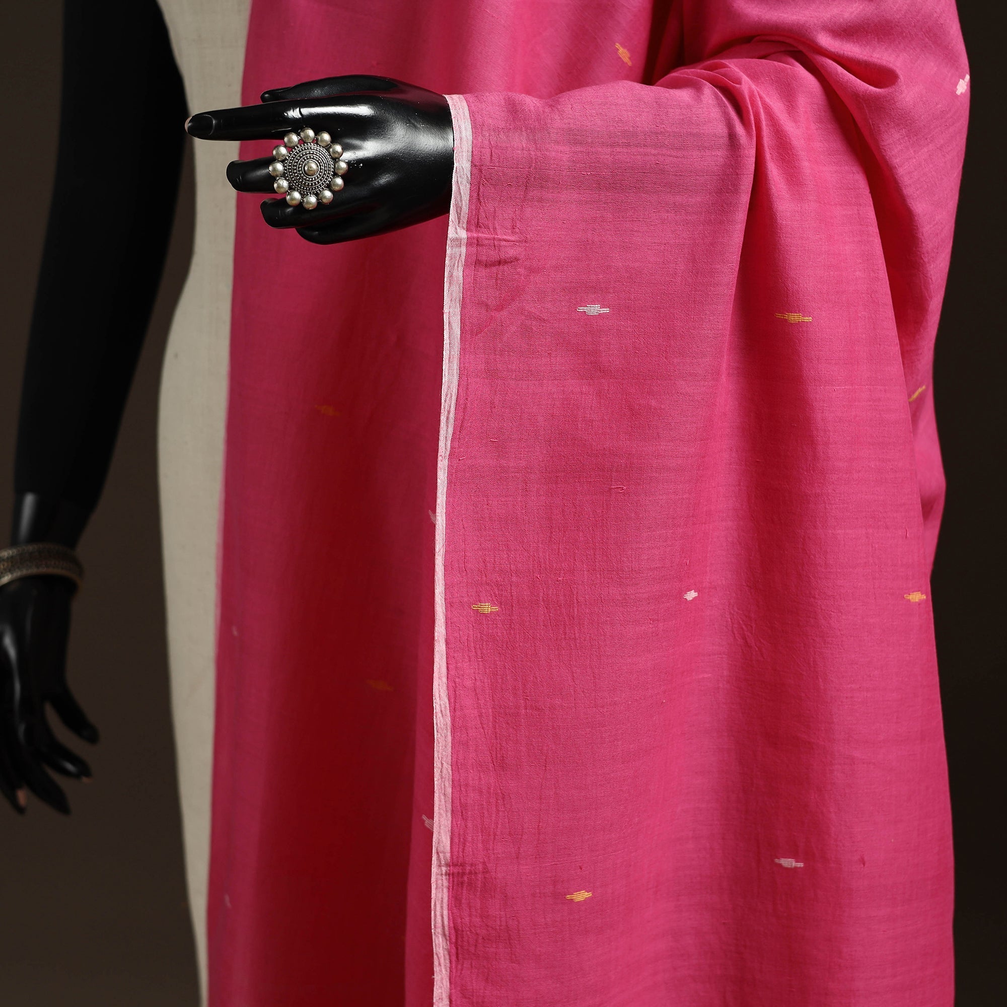 Pink - Handloom Cotton Bengal Jamdani Dupatta 24