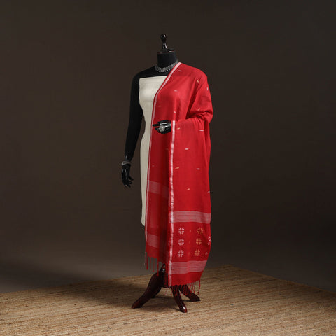 Red - Handloom Cotton Bengal Jamdani Dupatta 35