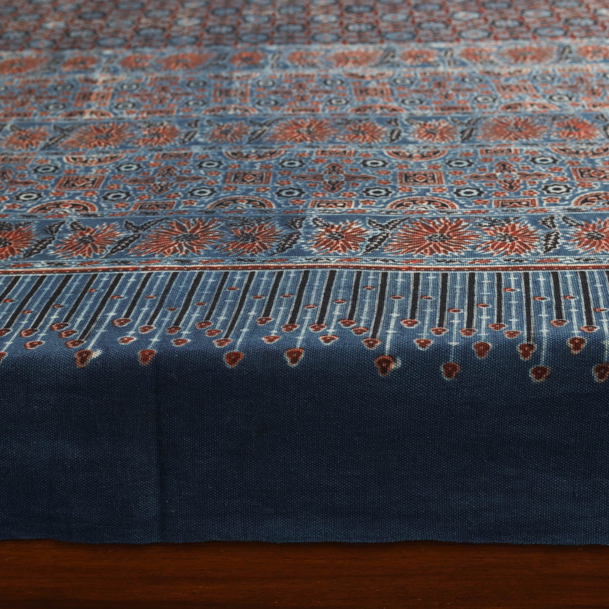 Experience the artistry of Kutch with this blue handloom cotton ajrakh double bedsheet by Jabbar Khatri. Crafted using centuries-old block printing techniques and natural dyes, each piece showcases intricate geometric patterns. Breathable and durable, it’s perfect for everyday use or festive settings.