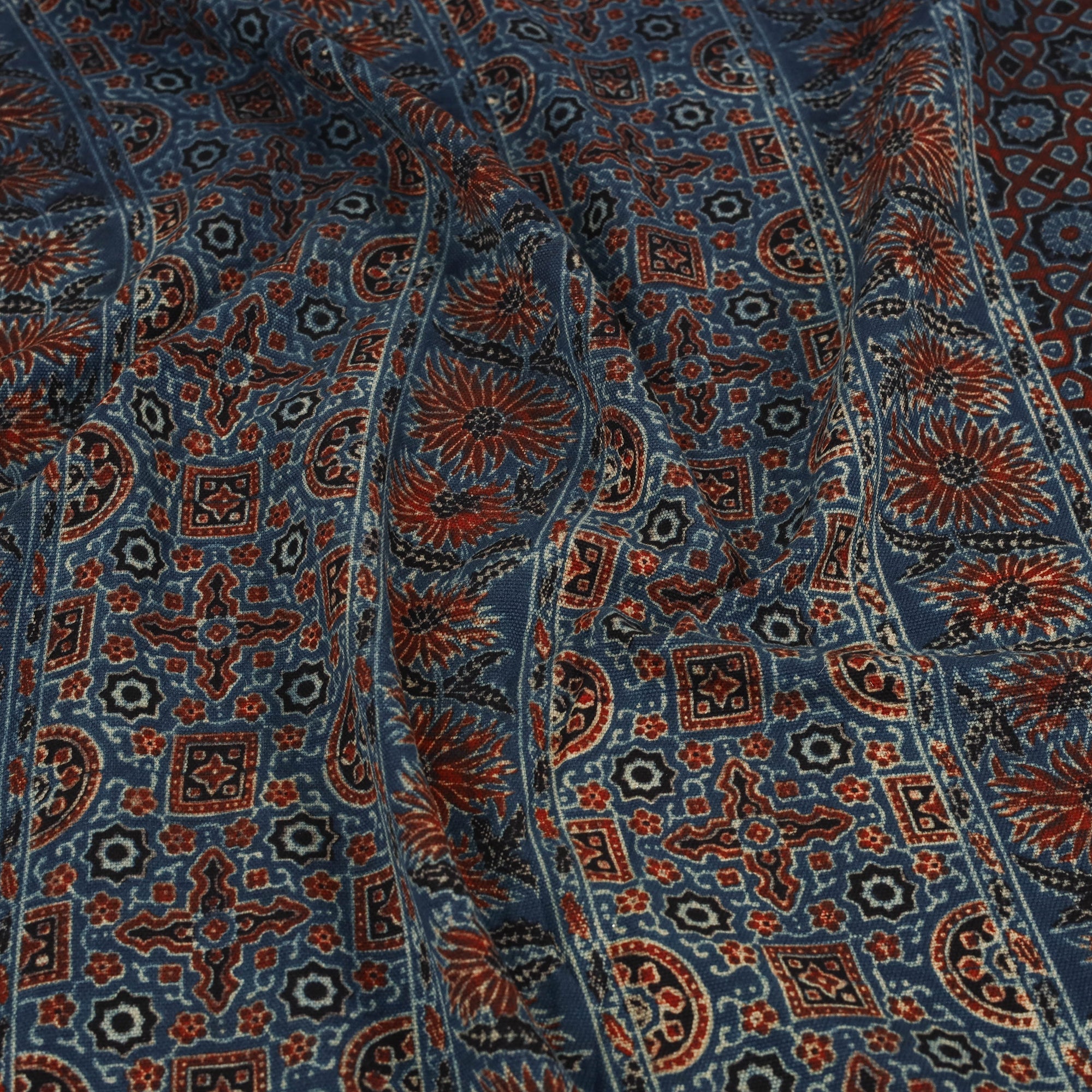 Ajrakh is a well-known traditional vegetable dyeing that resists block-printing techniques on cloth. Originated in Kutch, It is nearly around 4,500 years old practised by Khatri community of Kutch and Sikh.