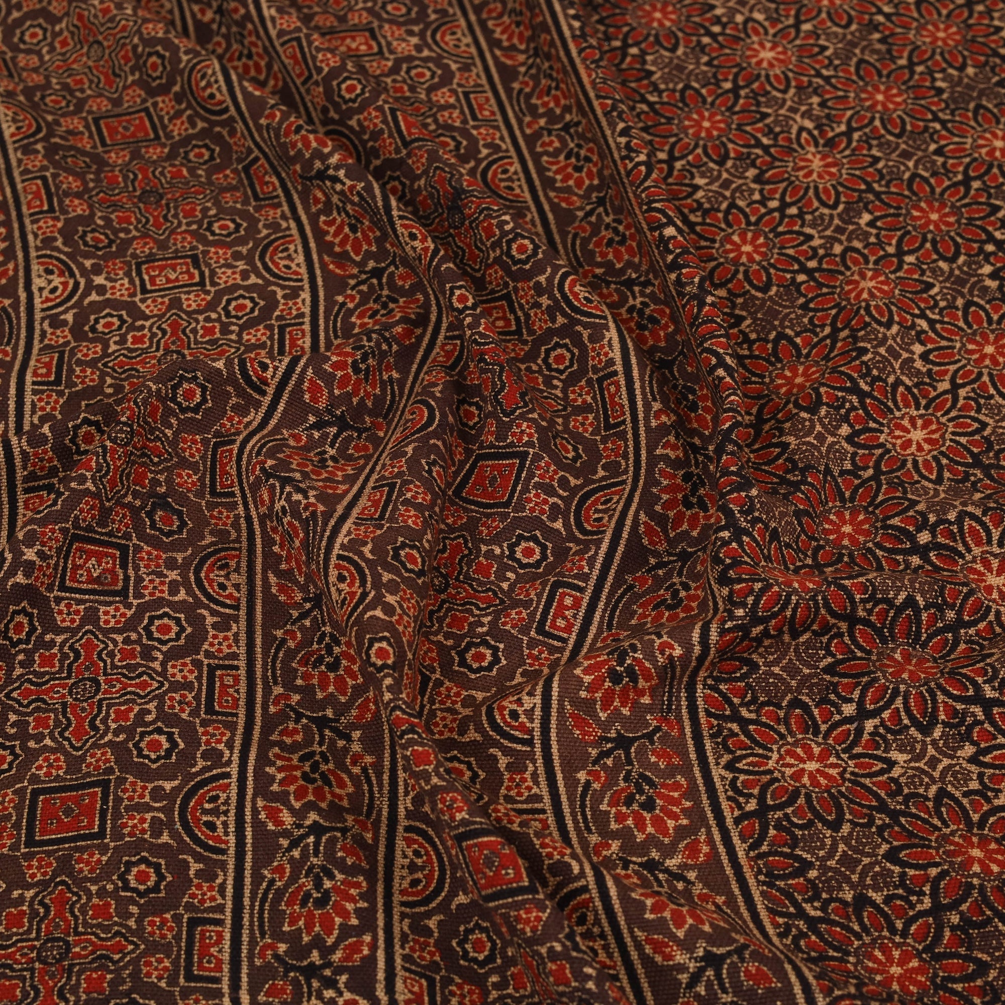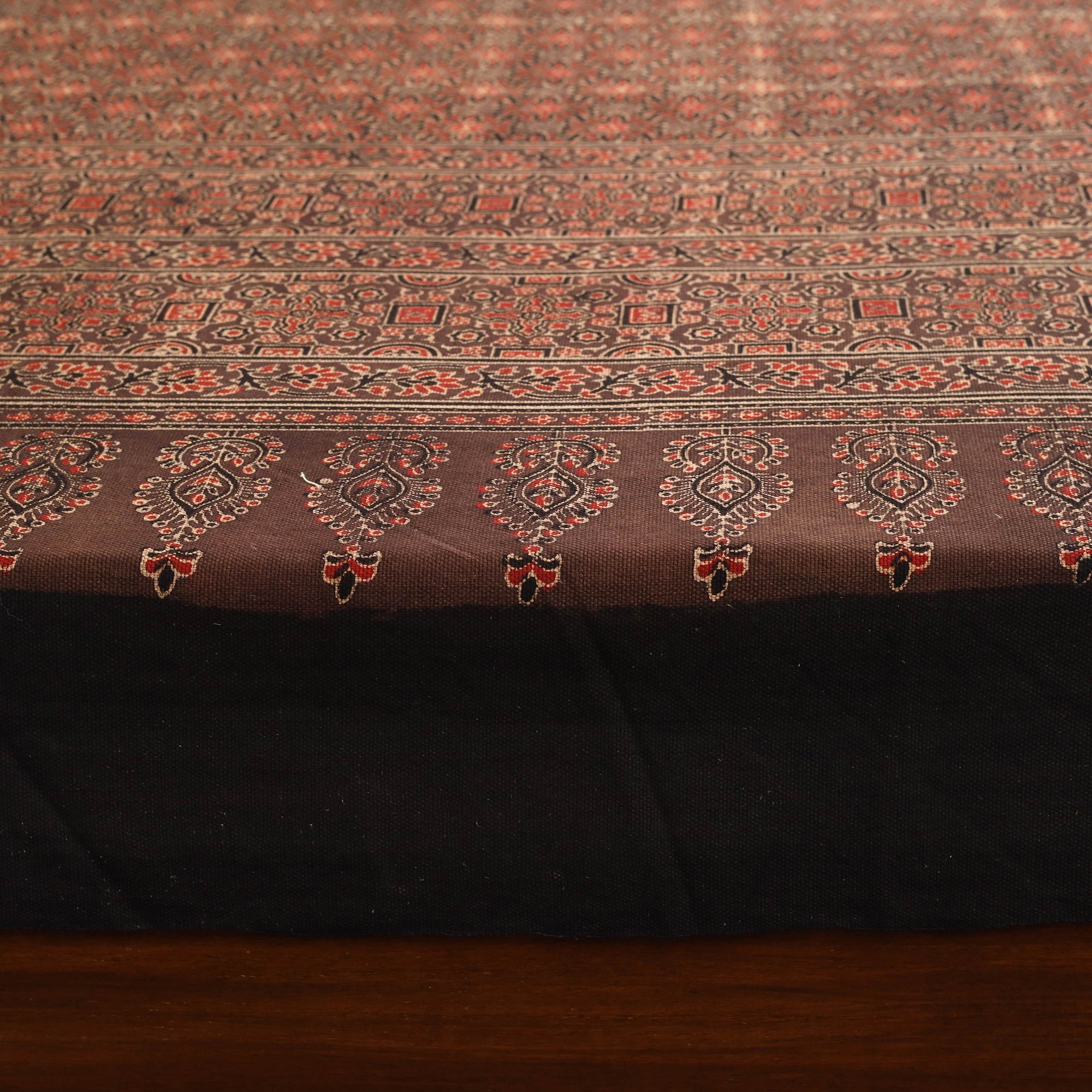 Experience the artistry of Kutch with this brown handloom cotton ajrakh double bedsheet by Jabbar Khatri. Crafted using centuries-old block printing techniques and natural dyes, each piece showcases intricate geometric patterns. Breathable and durable, it’s perfect for everyday use or festive settings.