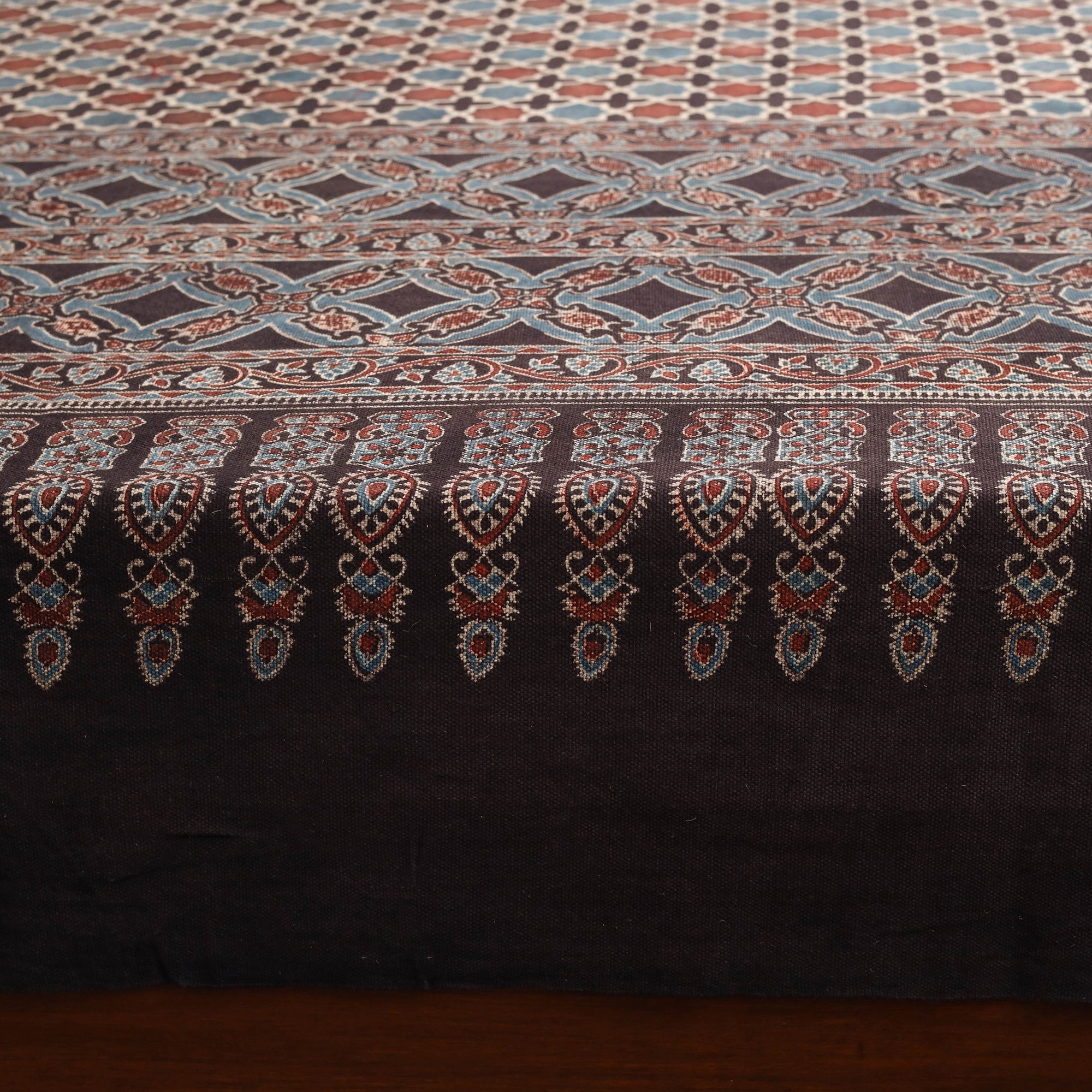 Experience the artistry of Kutch with this black handloom cotton ajrakh double bedsheet by Jabbar Khatri. Crafted using centuries-old block printing techniques and natural dyes, each piece showcases intricate geometric patterns. Breathable and durable, it’s perfect for everyday use or festive settings.