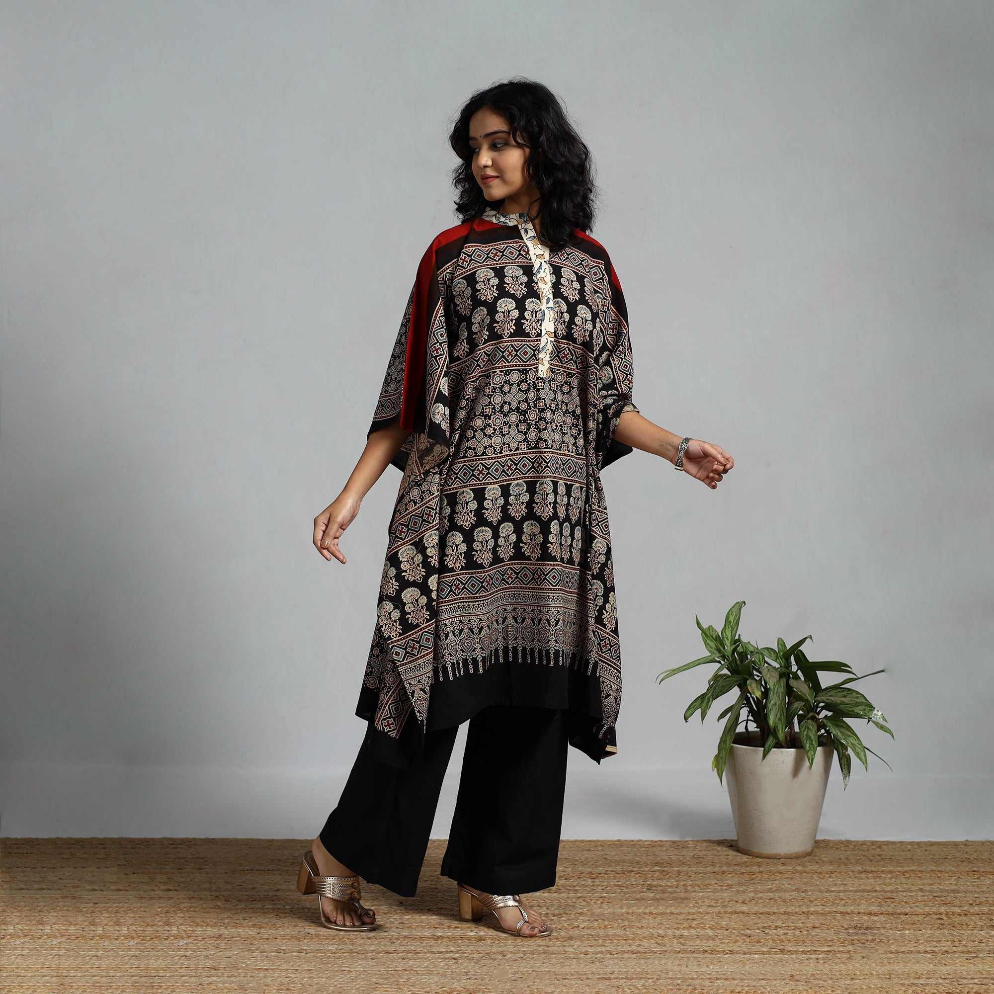 Handloom Cotton Block Print Natural Dyed Medium Ajrakh Kaftan 03