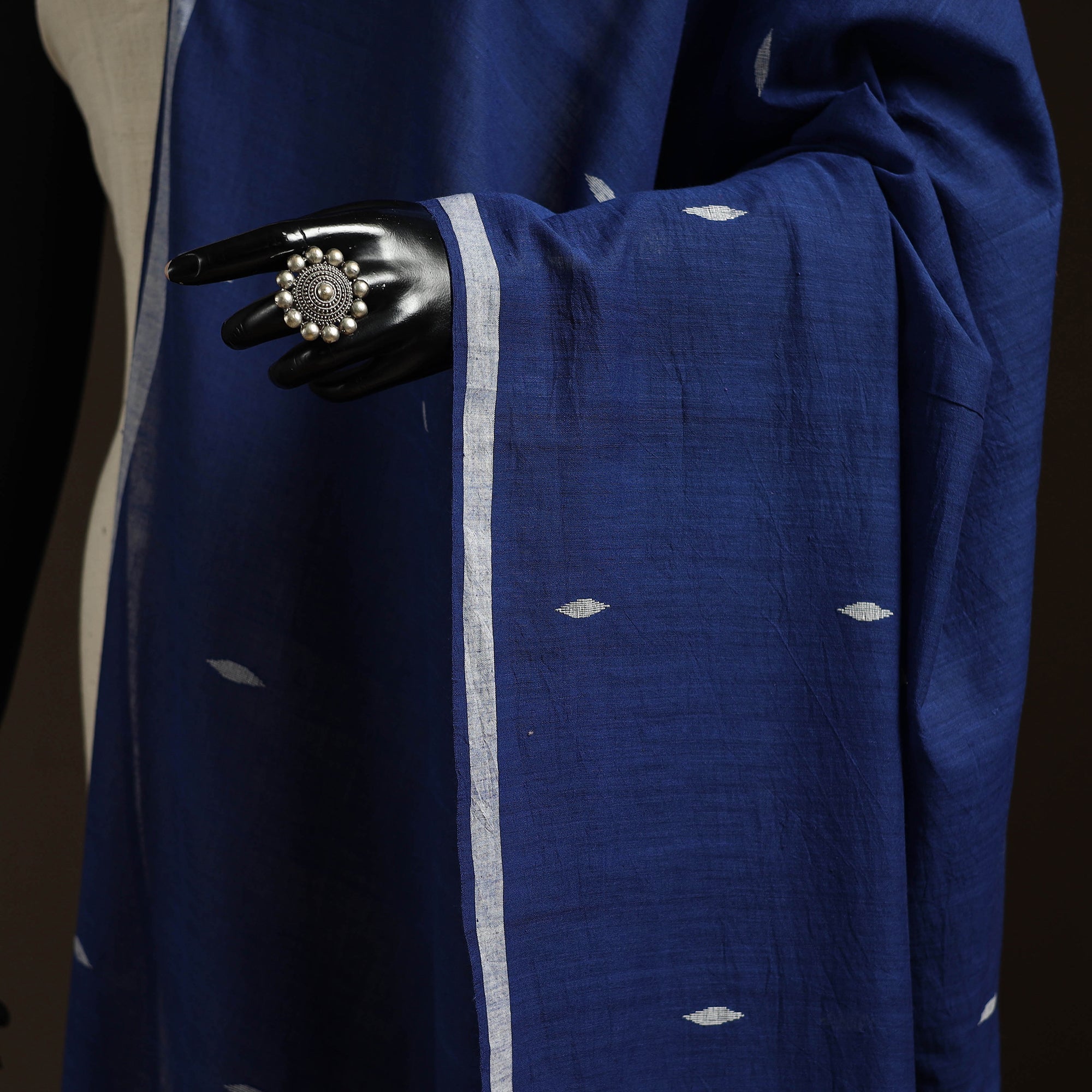 Blue handloom pure cotton burdwan jamdani dupatta with tassels is crafted by skilled artisans of Bengal. Jamdani’s is extra-weft weaving technique creates delicate embroidery like patterns directly on the loom. The traditional jamdani motifs woven in the dupatta complete this elegant masterpiece. A perfect blend of tradition this lightweight dupatta is ideal for both special occasions and everyday wear.