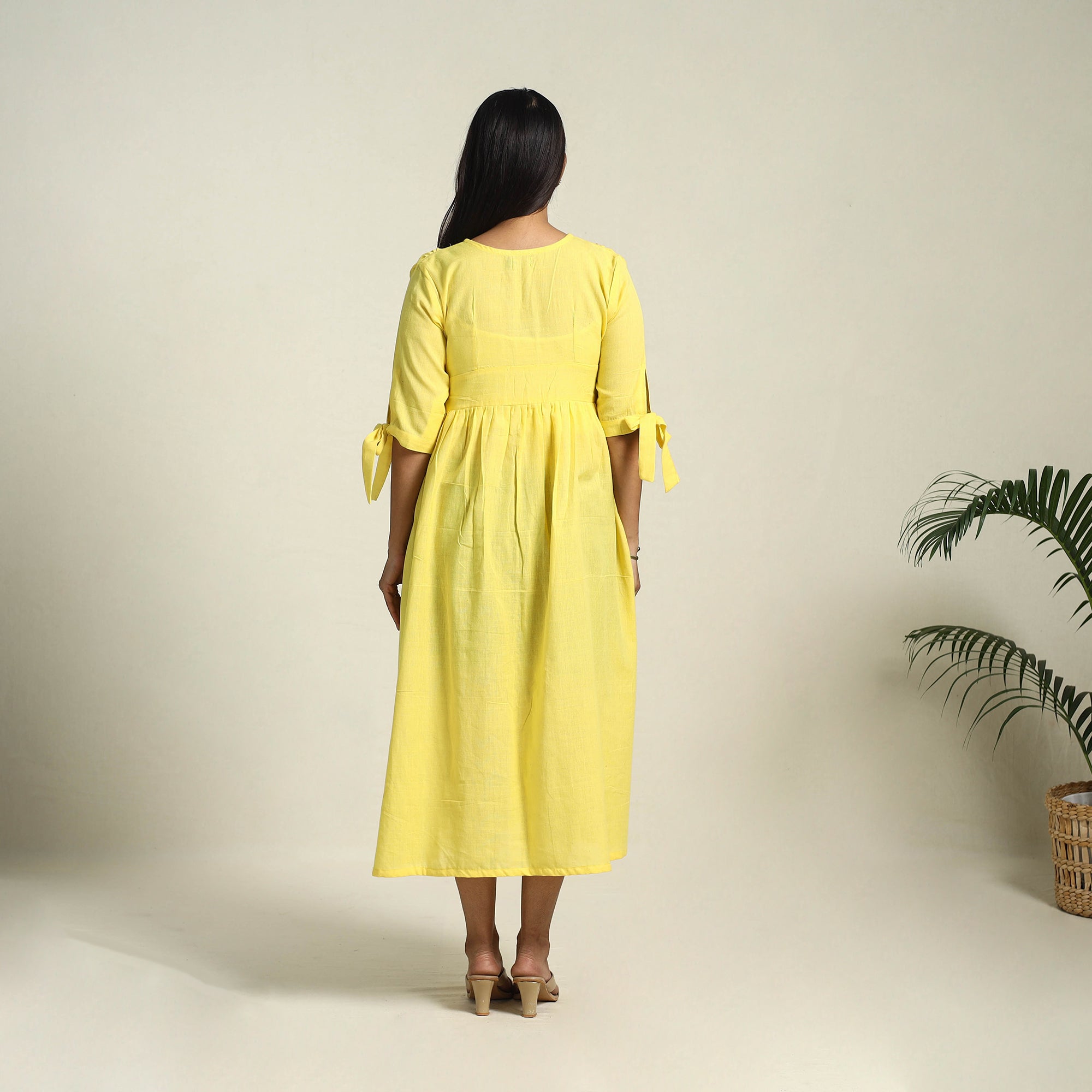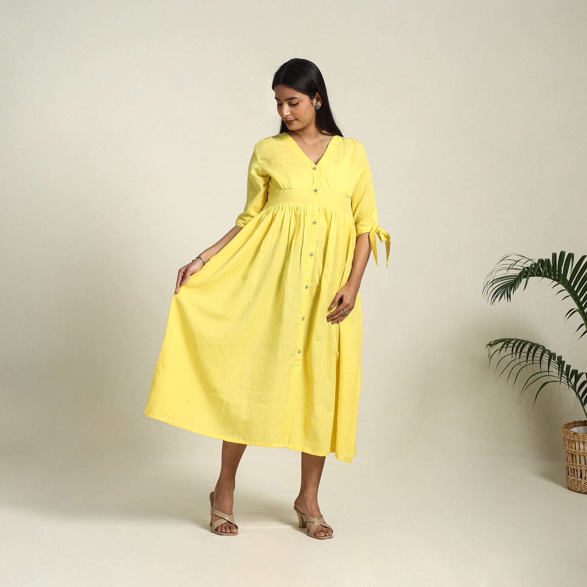 Step into effortless style with this yellow handloom cotton button-down dress. Featuring a soft and breathable touch, it offers lasting comfort with every move. A versatile pick for casual events and everyday outings, this dress merges classic craftsmanship with modern elegance.