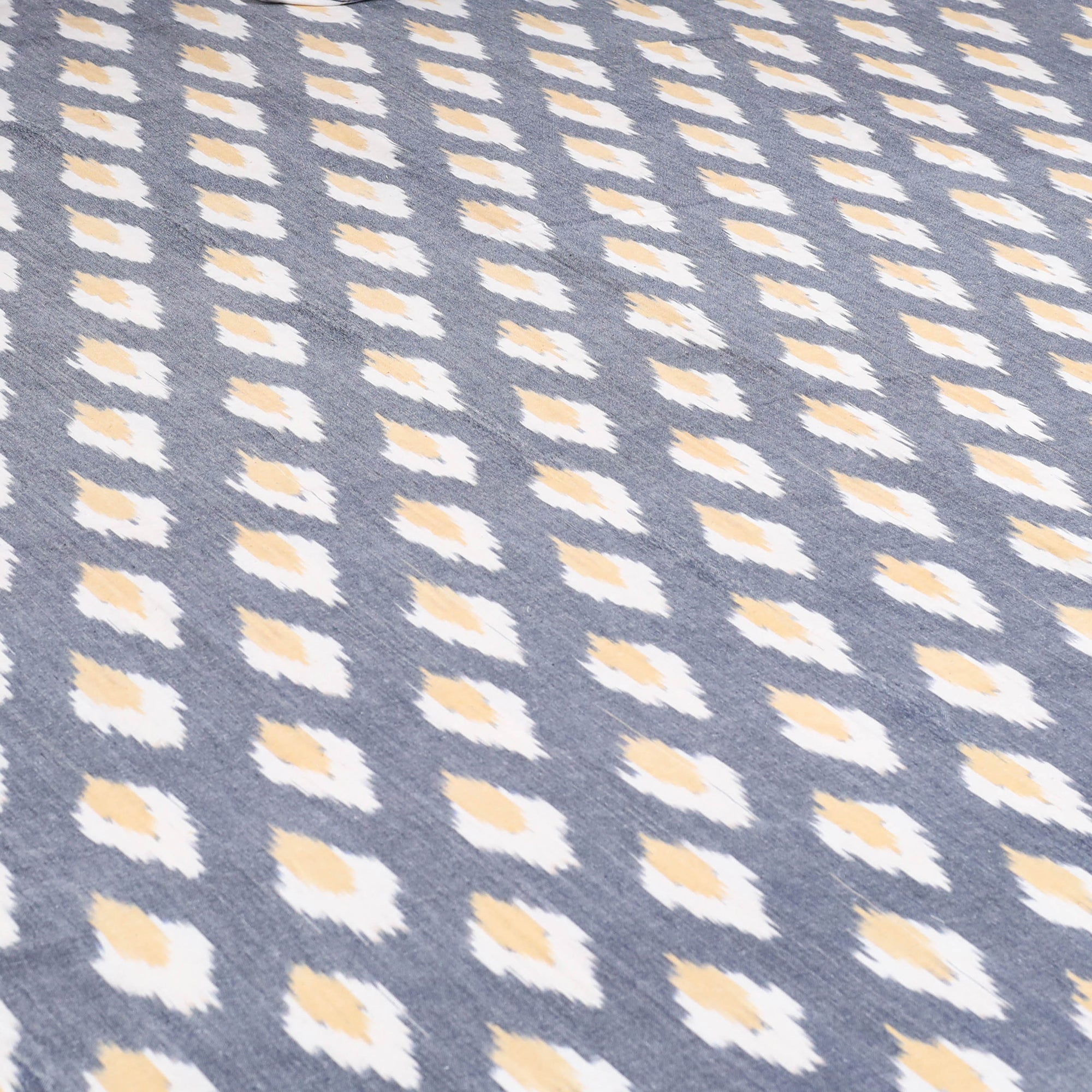 Handloom cotton pochampally ikat bed sheet set, crafted by skilled artisans. The ikat technique involves resist dyeing the yarns before weaving, which creates intricate and unique patterns. This double bed sheet set includes matching pillow covers for a coordinated and complete look.