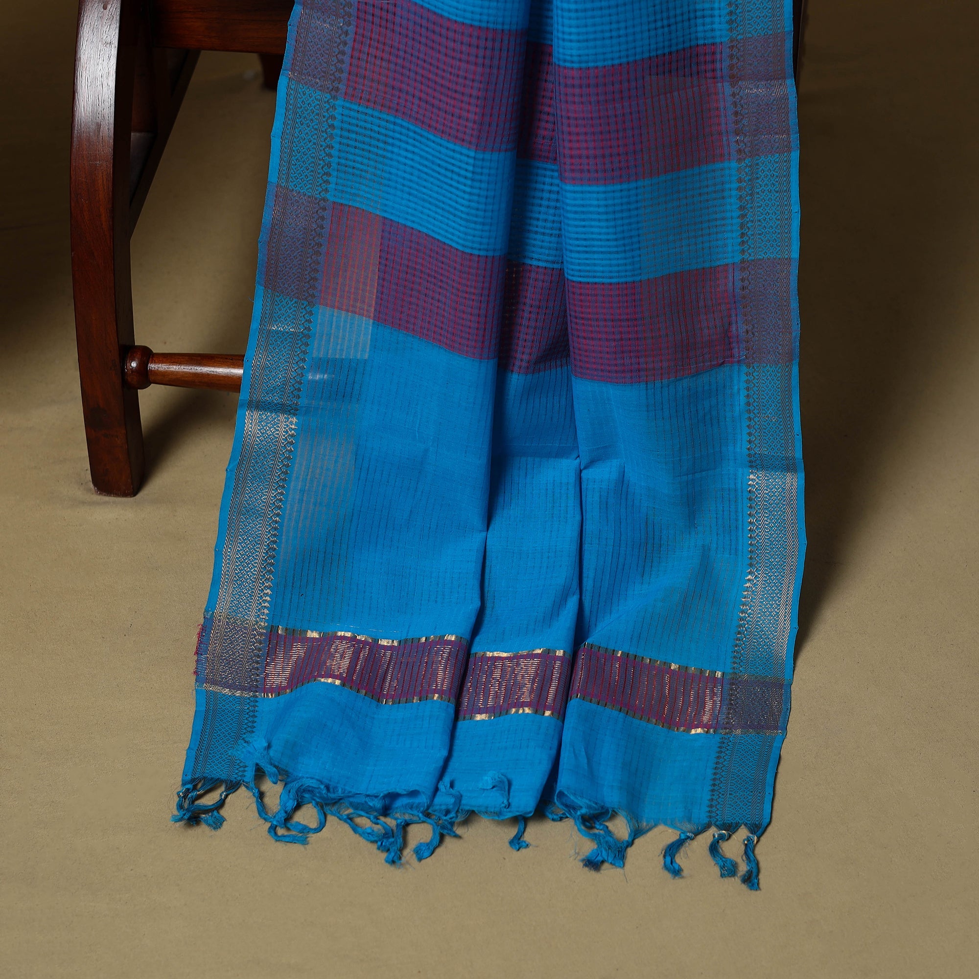 3pc original mangalagiri handloom cotton unstitched dress material set from Andhra Pradesh. Woven using the traditional mangalagiri technique known for its fine texture and nizam zari borders, this set beautifully blends simplicity with elegance. It includes a kurta, a matching plain bottom, and a missing checks dupatta. Perfect for festive occasions or effortless everyday styling.